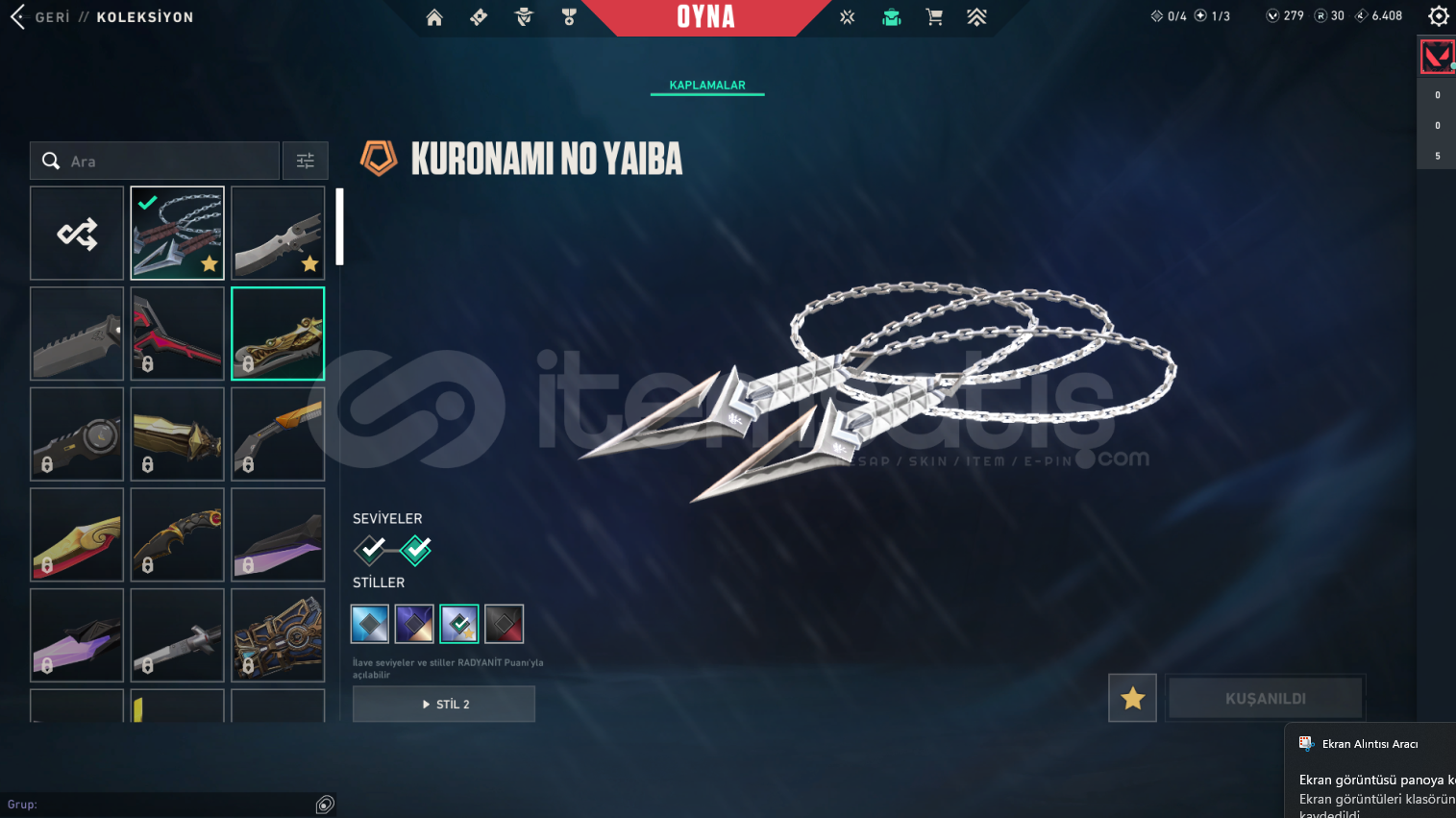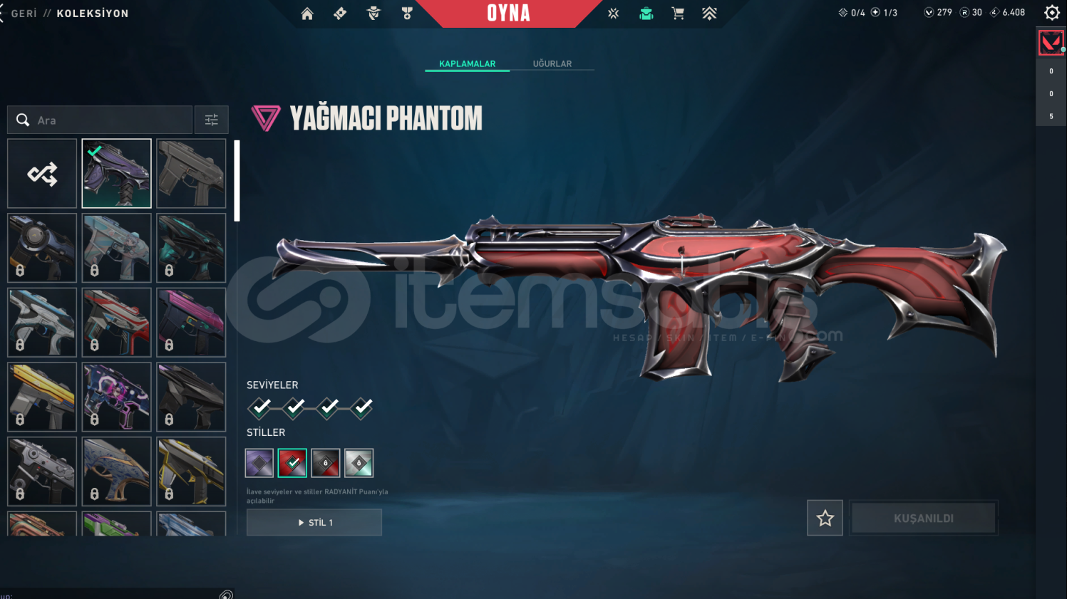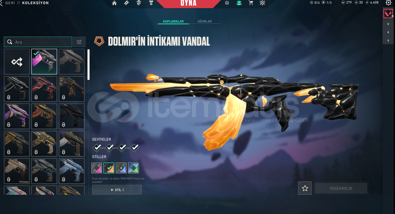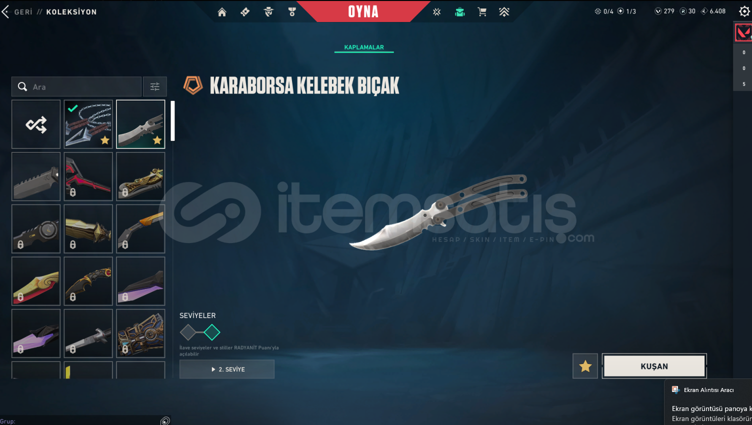 hesabımız gayet iyi bir hesaptır içerisinde : yağmacı phantom , dolmır in intikamı vandal , kuronami bıç ve karaborsa kelebek bulunmaktadır elosu golddur ve hesap 32 lvl dir bilginize