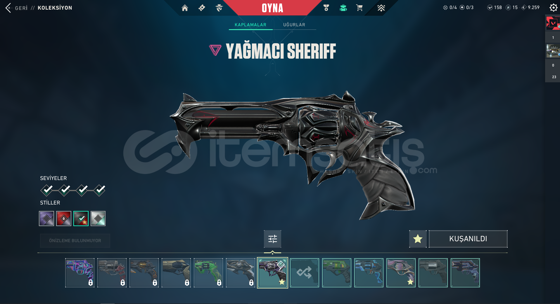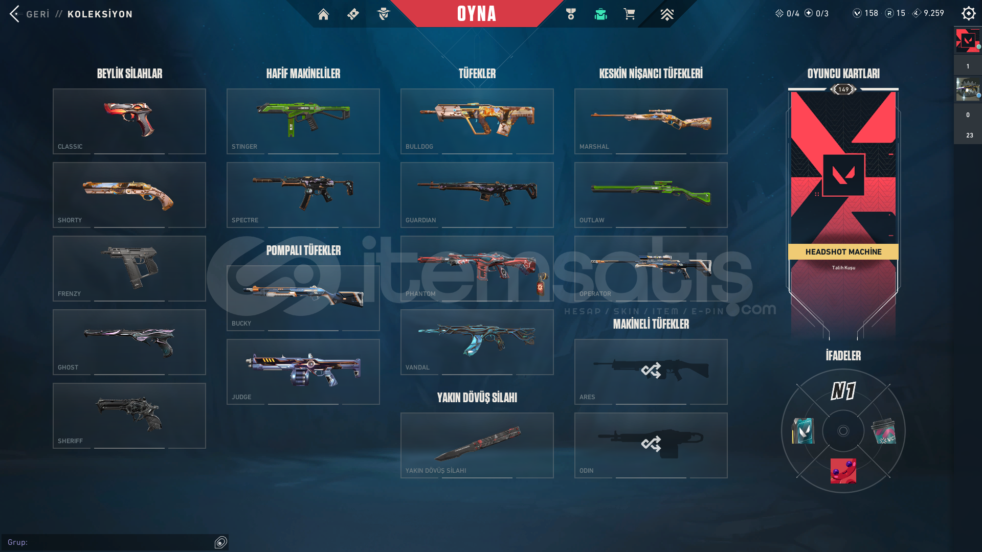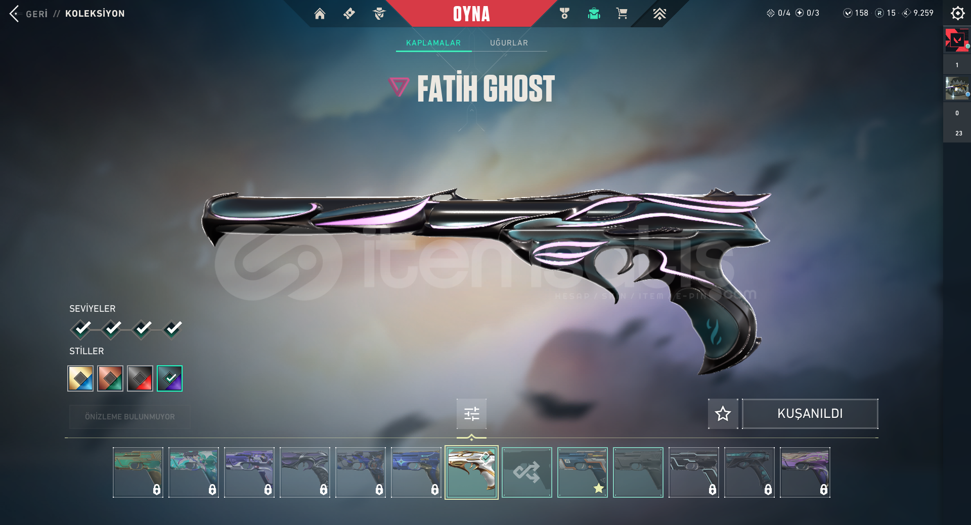 HESAP SEVİYESİ: 149RANK: PLATİN 1 (Platinum 1 )KİNGDOM KREDİSİ: 9259RADYANİT: 15VP: 158CLASSICLERGALAKSİ MUHAFIZI CLASSICATLAS // KMT CLASSICYOONSEUL CLASSICSHORTYLERSÜKÜNET SHORTYFRENZYLERSKİNS YOK GHOSTLARFATİH GHOSTFREKANS GHOSTSHERİFFLERYAĞMACI SHERİFFKARTUŞ SHERİFFNANOKIRILMA SHERİFFSIRÇİÇEĞİ SHERİFFSTINGERLERKARTUŞ STINGERSPACTRELARYOONSEUL SPACTREATLAS // K...