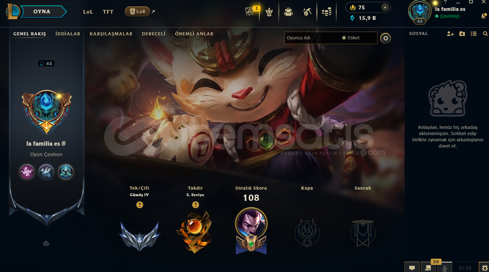 Not: Hesap hem Valorant hem de LoL’dür. Her iki oyun hesabı da sağlamdır. Hesabın maili değiştirilip, ilk kurtarma bilgileri alıcıya iletilecektir.