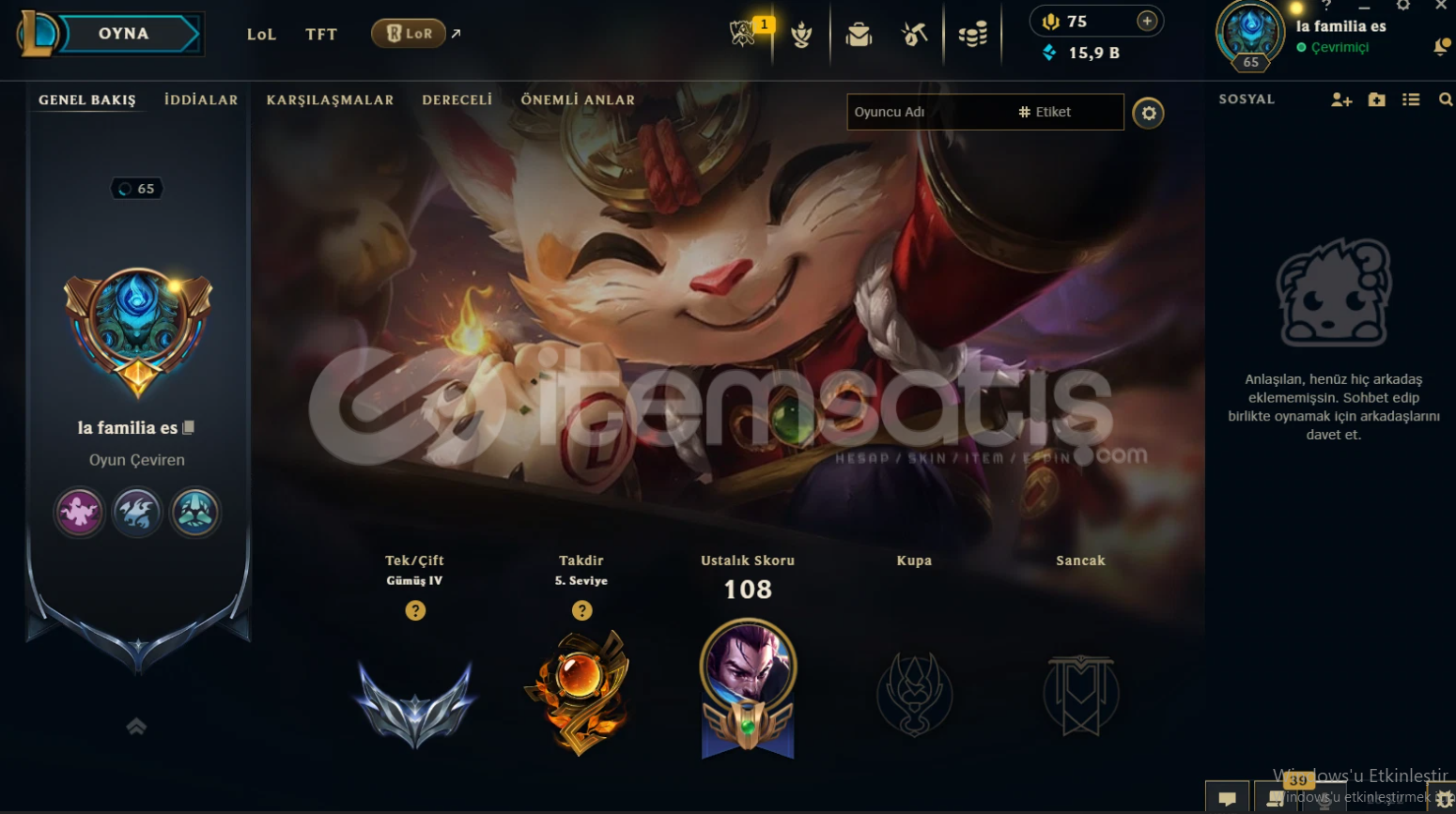 Not: Hesap hem Valorant hem de LoL’dür. Her iki oyun hesabı da sağlamdır. Hesabın mailini ve şifresini değiştirebiliceksiniz.Not: Hesap TR sunuculudur, Mağaza Ülkesi Bile TRdir, İstediğiniz skini vp yükleyerek satın alabilirsiniz. (İki Oyundada)Not: Bansız , Cezasız Kilitsiz TERTEMİZ HESAPP!!!🌌 🔥 VALORANT HESABI 🔥 🌌💎...