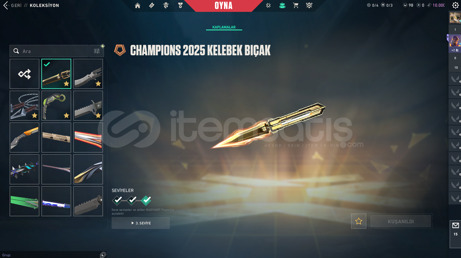 KNİFE : CHAMPİONS 2025 KELEBEK , KARABORSA KELEBEK , KURONAMİ NO YAİBA , RGX 11Z PRO , UZAYLI AVCISI BIÇAKLARI MEVCUTTUR.
