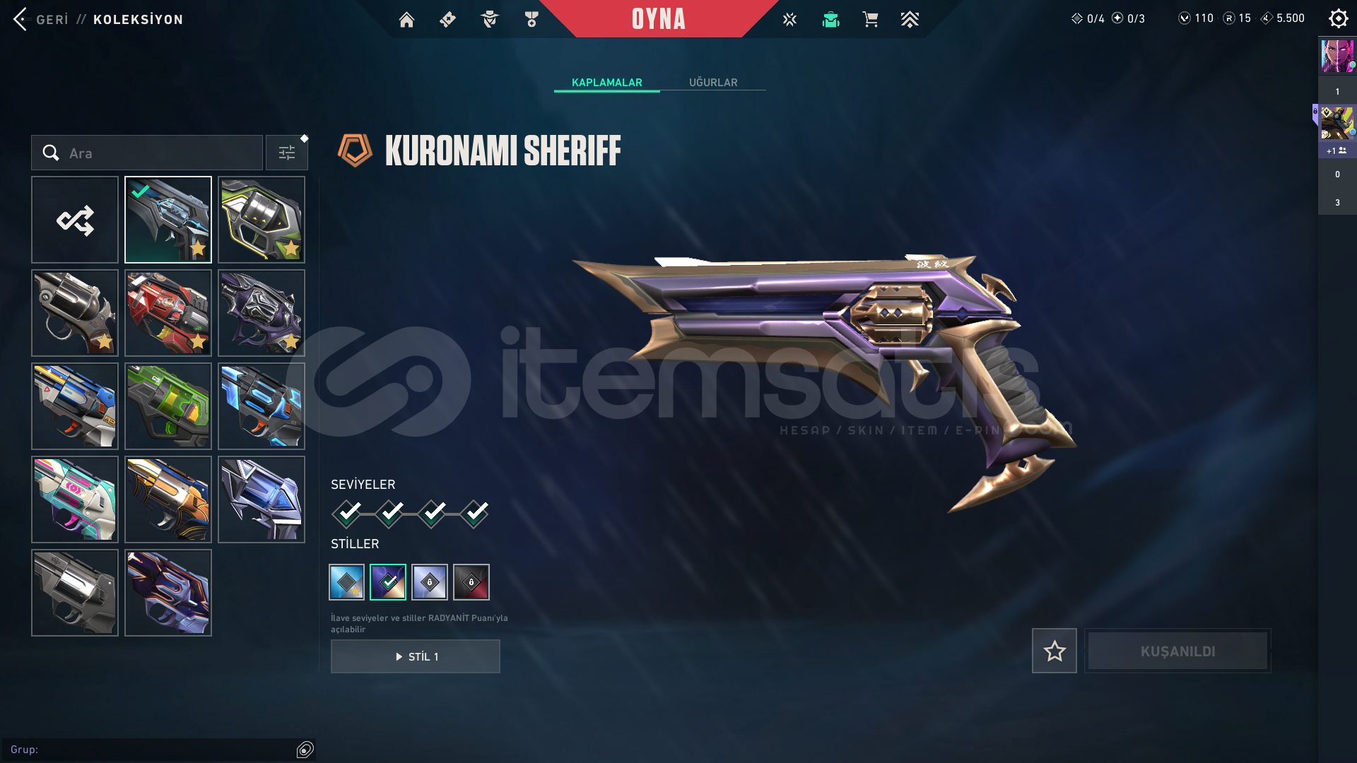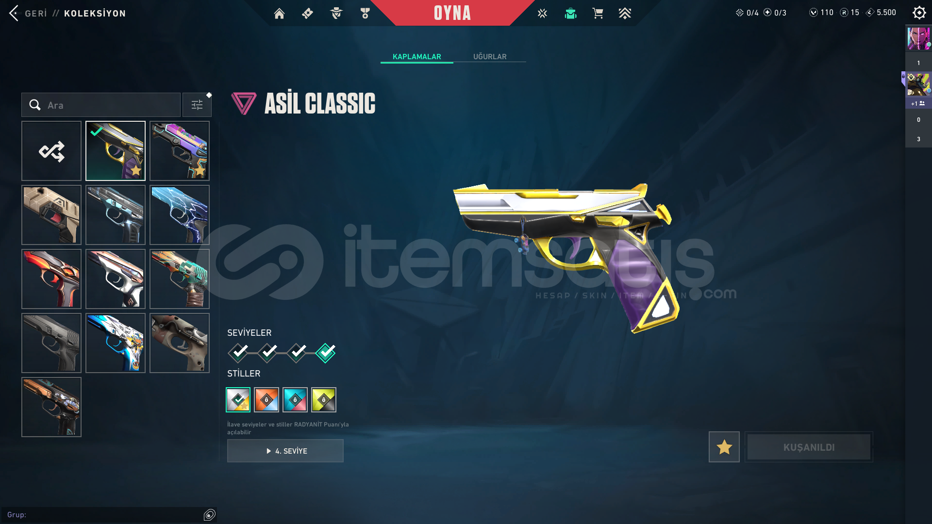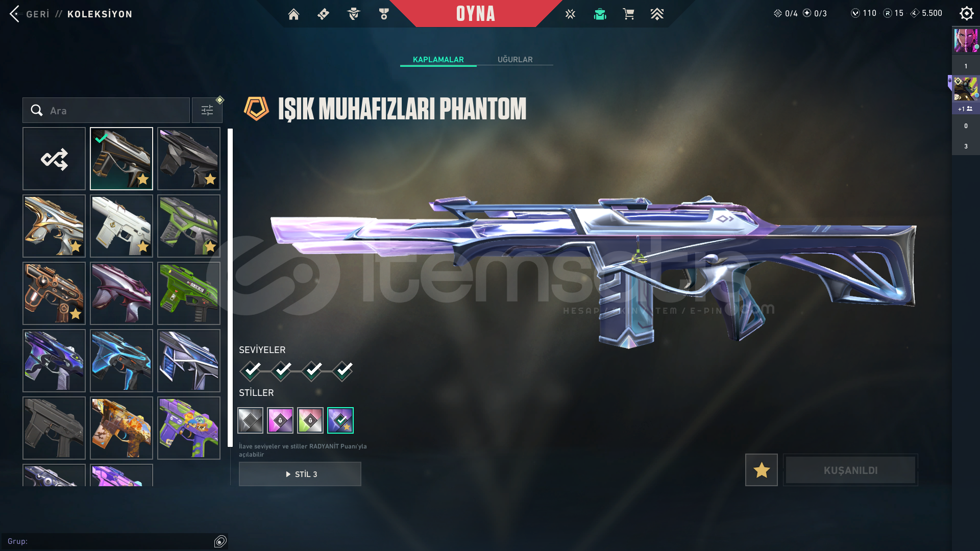 hesapta battlepas skinleri dahilinde toplam 191 adet skin vardır