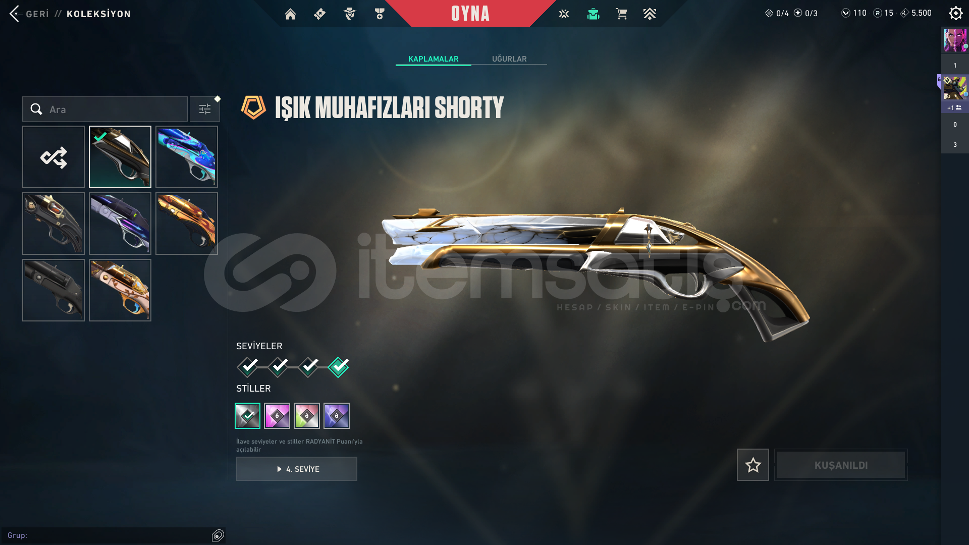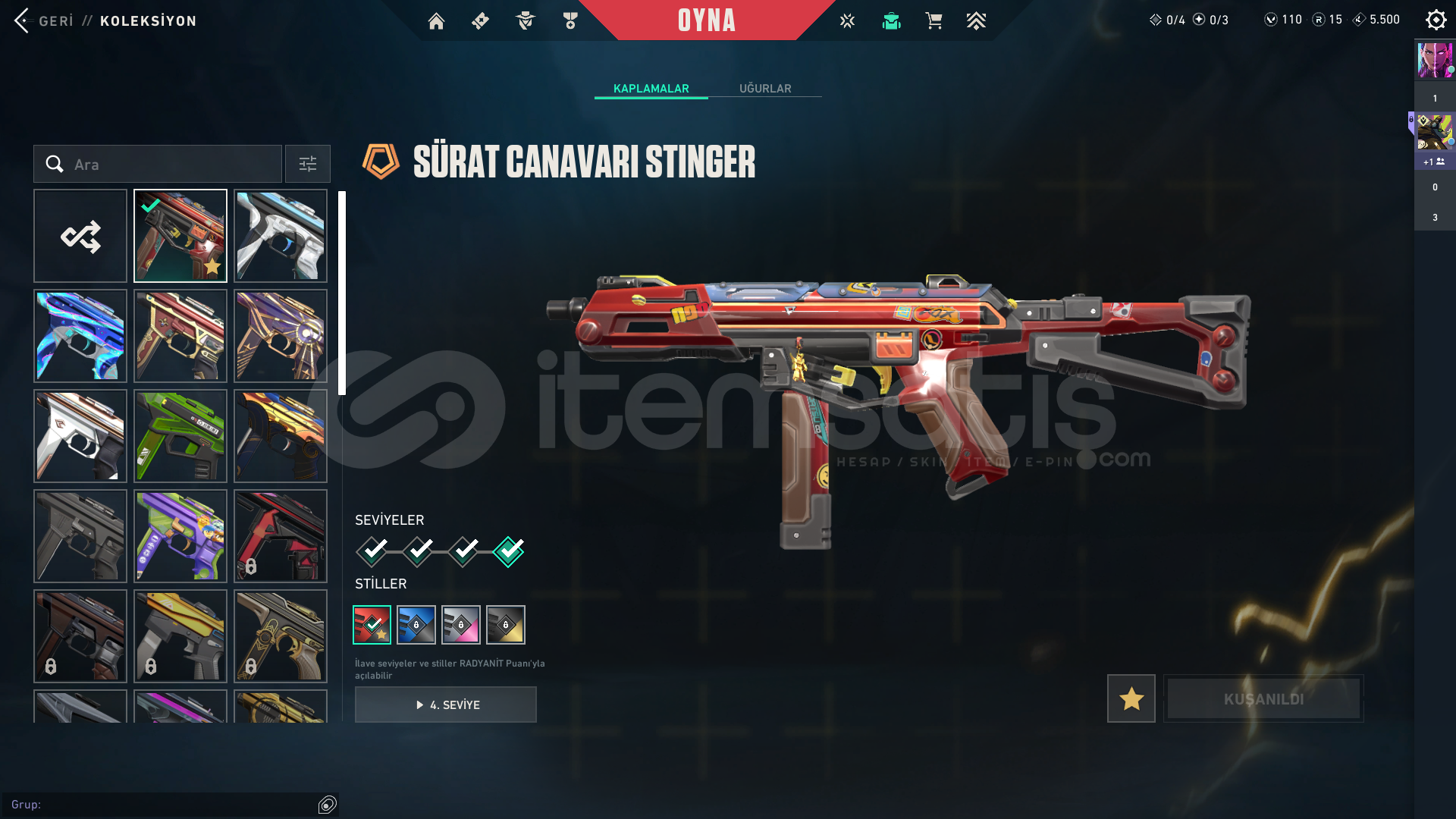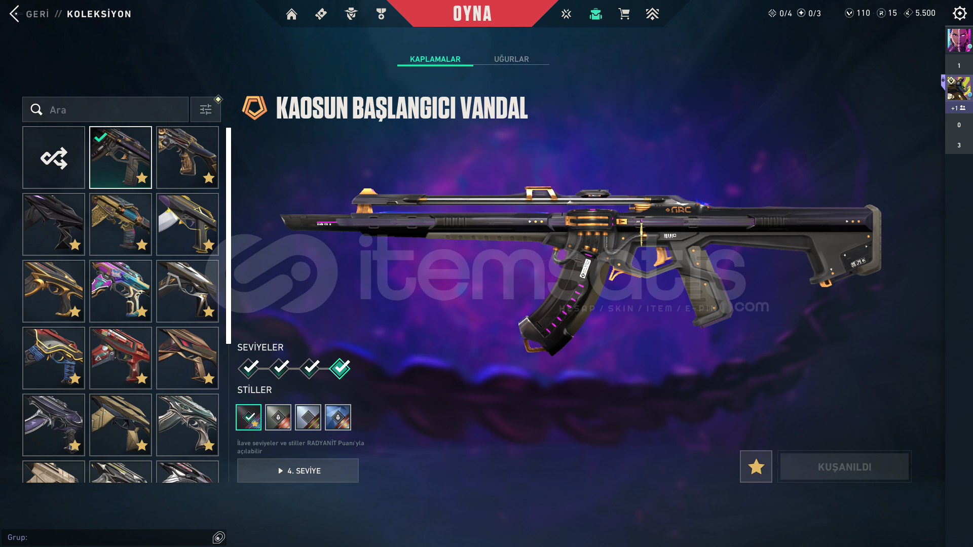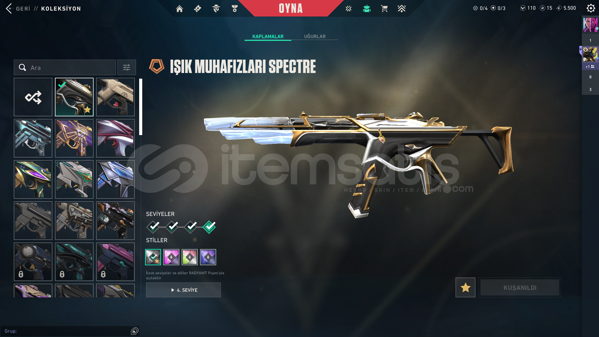 hesapta battlepas skinleri dahilinde toplam 191 adet skin vardır