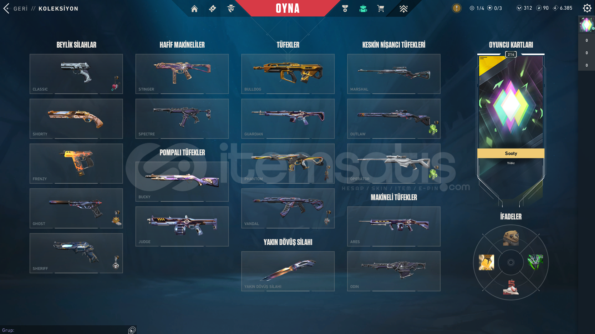 TÜM SKİNLER SON SEVİYEDİR RENKLERİN %80İ AÇIKTIR + 312 VP 90 RADYANİT VAR YENİ GELEN VETO DAHİL TÜM AJANLAR AÇIKTIR BU SEZON DİA1 BİTİRDİ PEAK YÜCE1