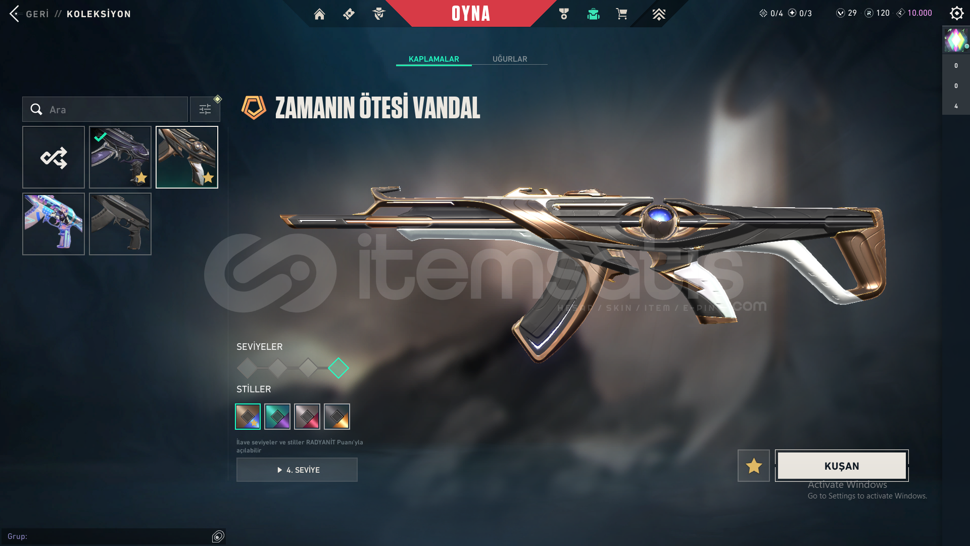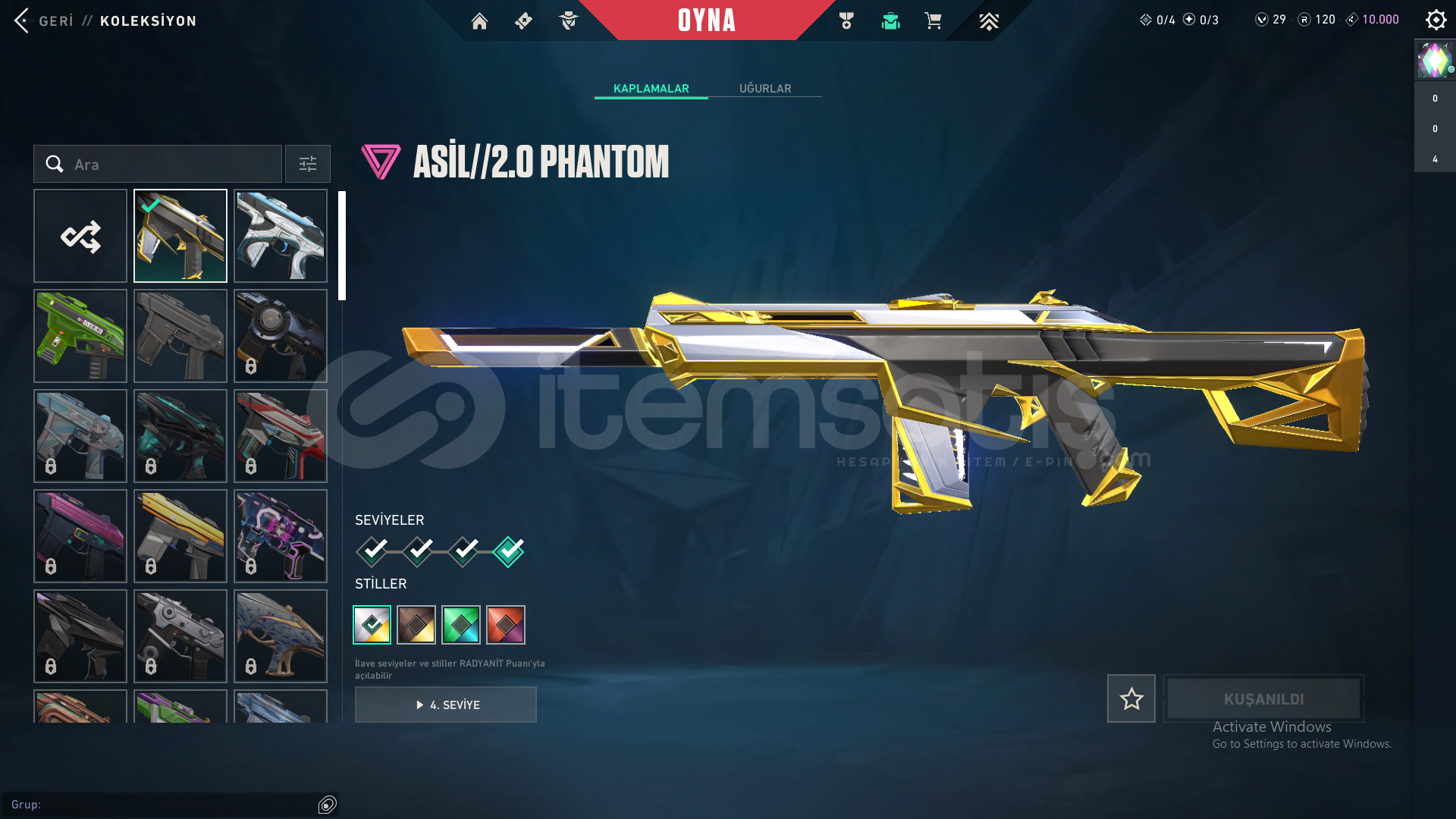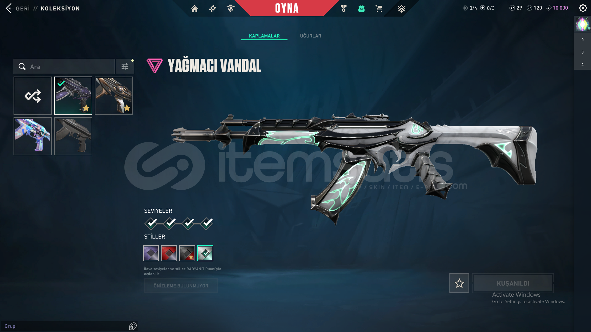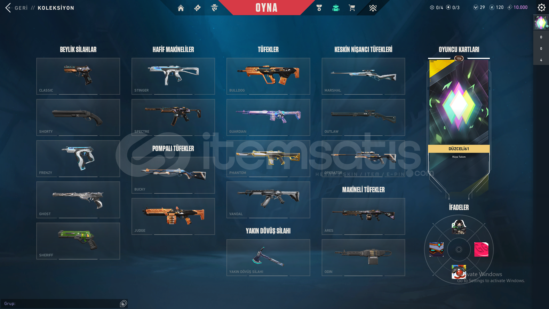 -RGX 11Z Pro Karambit-Seri Balta-Ulupençe Bıçak-Yağmacı Vandal-Zamanın Ötesi Vandal-Asil 2.0 Phantom-Fatih Ghost+battlepass skinleri mevcuttur.Hesabın ilk maili vardır hesabı kurtarmayı deneyerek kanıtlayabilirim.Telefon numarası bağlı değildir.