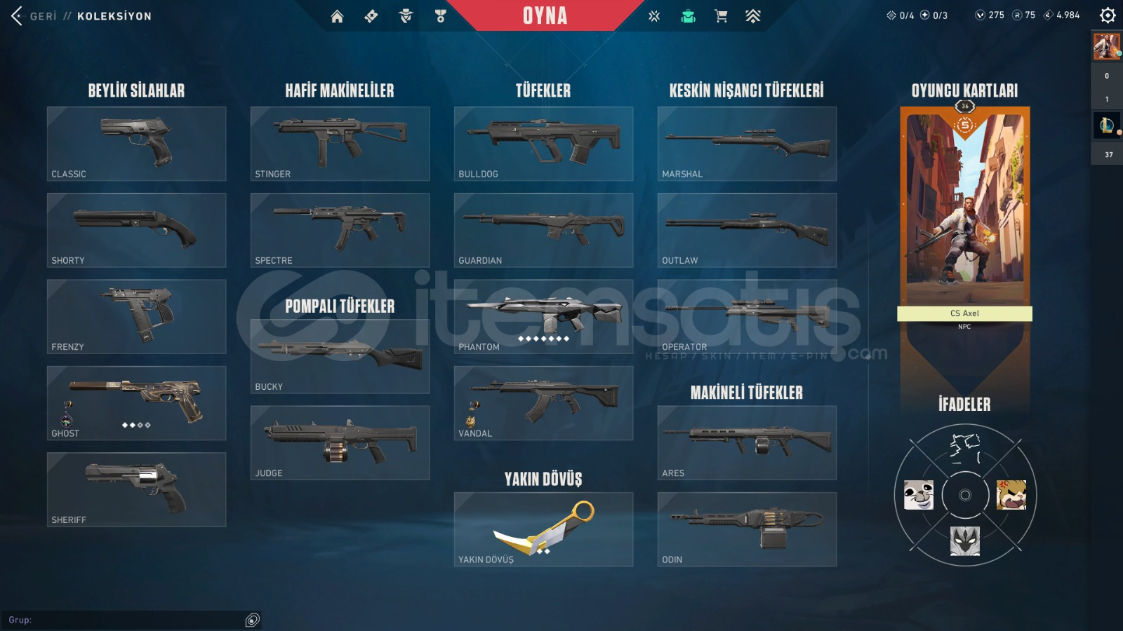 Hesapta Olan SkinlerBıçakAsil KarambitPhantomYıldız Belası PhantomEZİO SHOP GÜVENCESİHesap %100 Tr7/24 DestekTeslimat 3 saati geçmezÖNEMLİ !!Satın alındıktan sonra kesinlikle sorumluluk kabul etmiyoruz tamamen sizin sorumluluğunuz altındadır