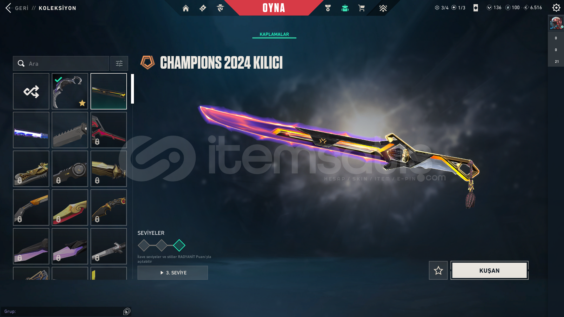 Hesap ilk mail ile verilcektir. Hoşgeldin mesajı vardır.Hesap tr sunucudur.Skinler:Cesur yürek ghost.Seri tetik sheriff.Champions 2024 phontom.Dolmirin intikamı vandal.Cesür yürek vandal.yağmacı vandal.yağmacı karambit.champions 2024 kılıç.LucasStore güvencesiyle...