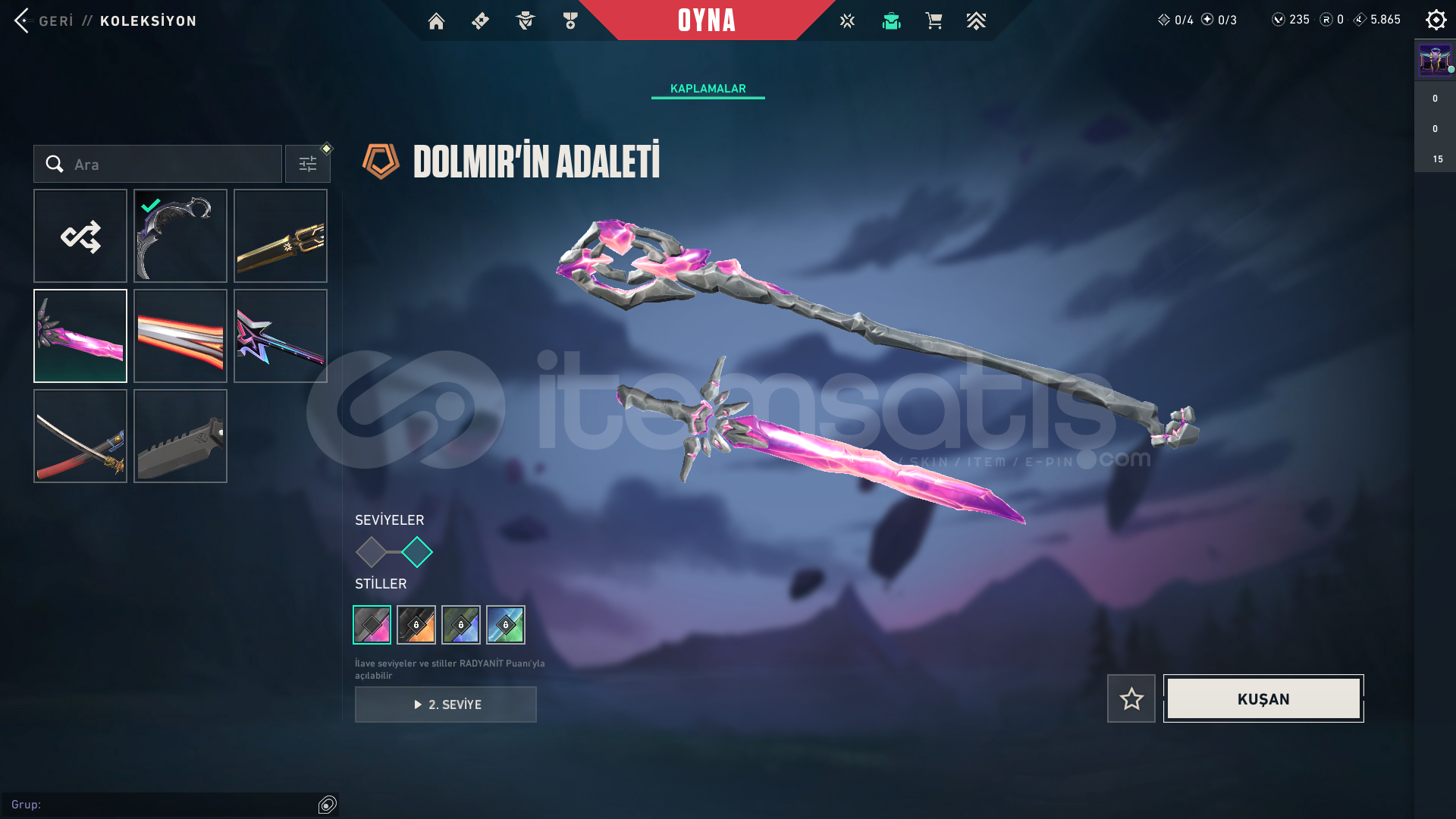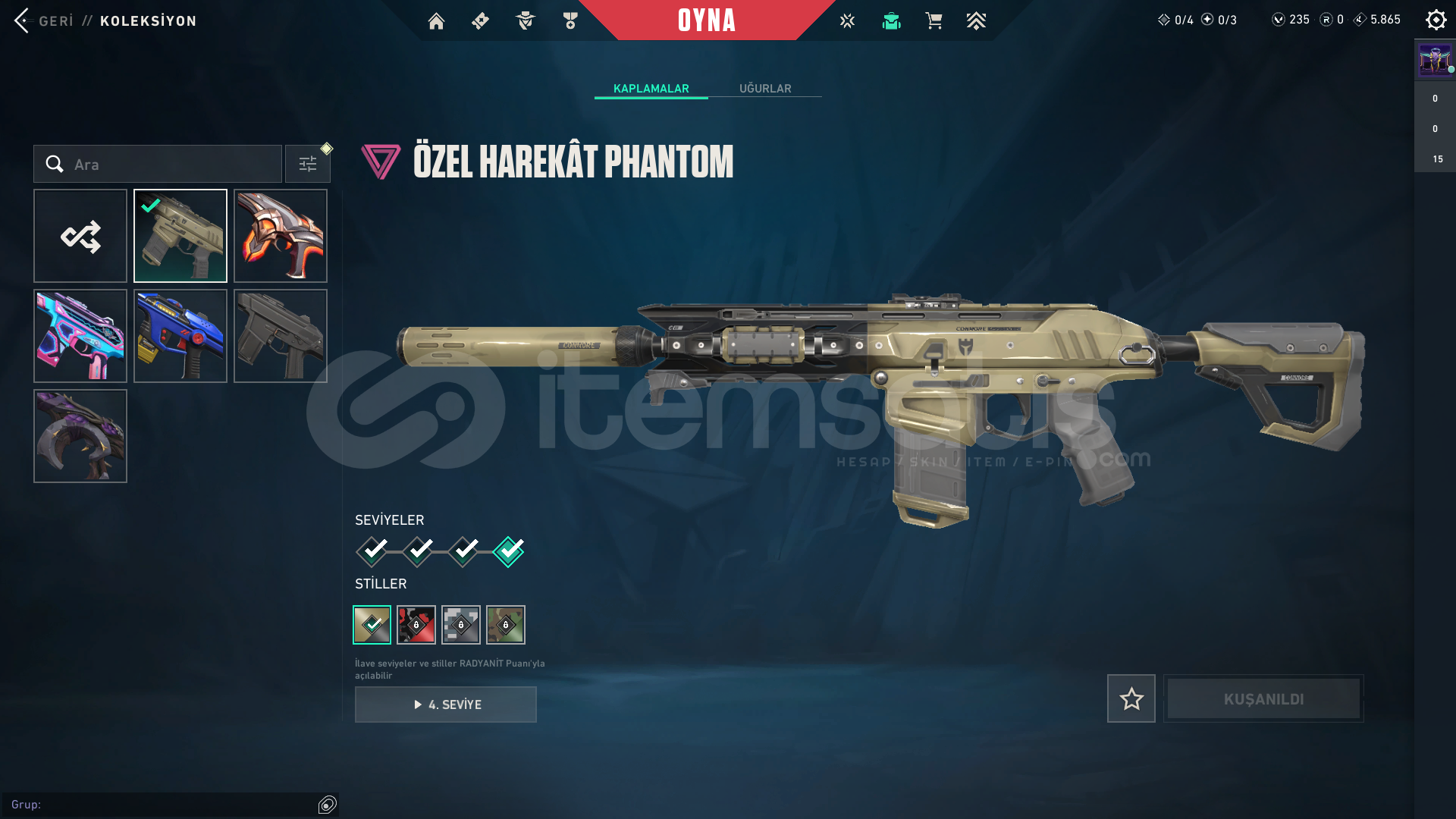 RADYANİT EKSİKLİĞİNDEN DOLAYI BAZI SKİNLER GELİŞTİRİLMEMİŞTİR !