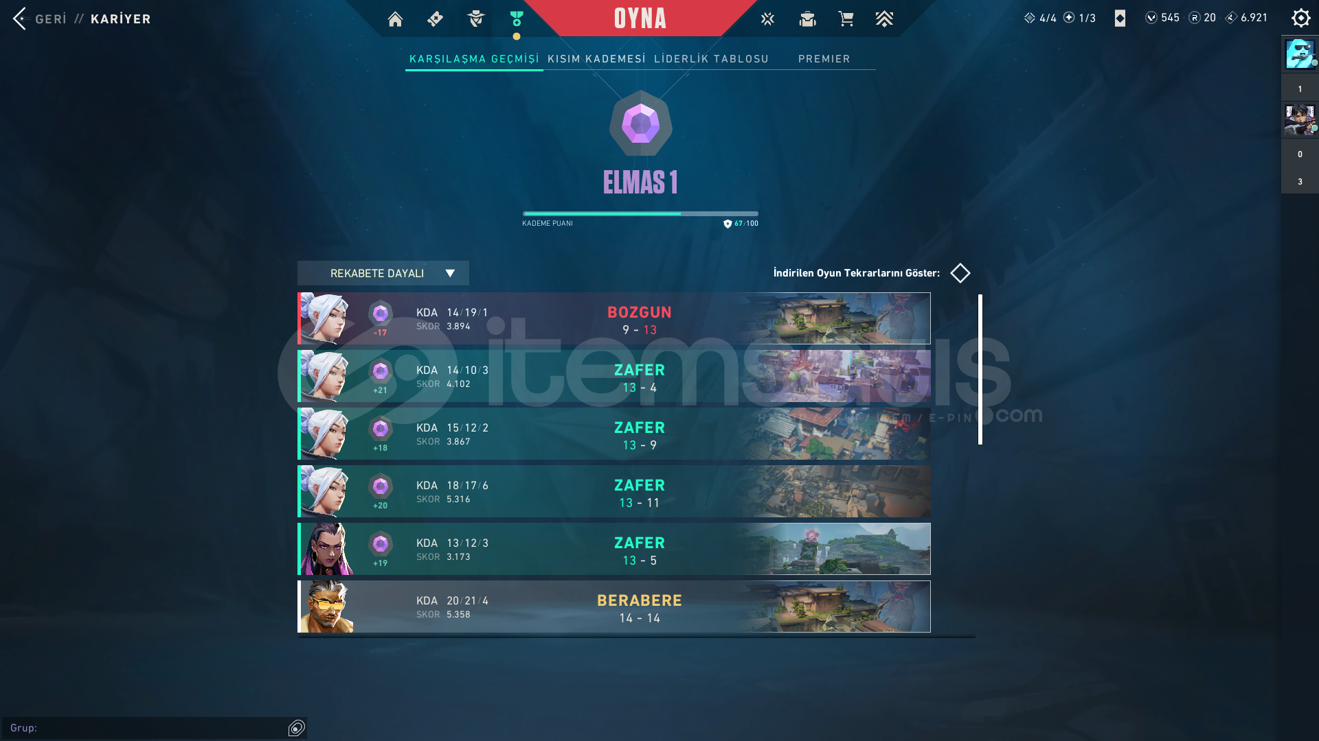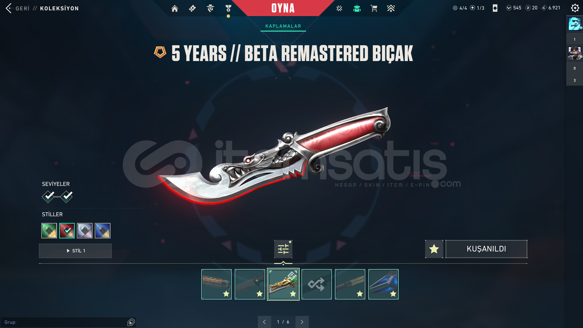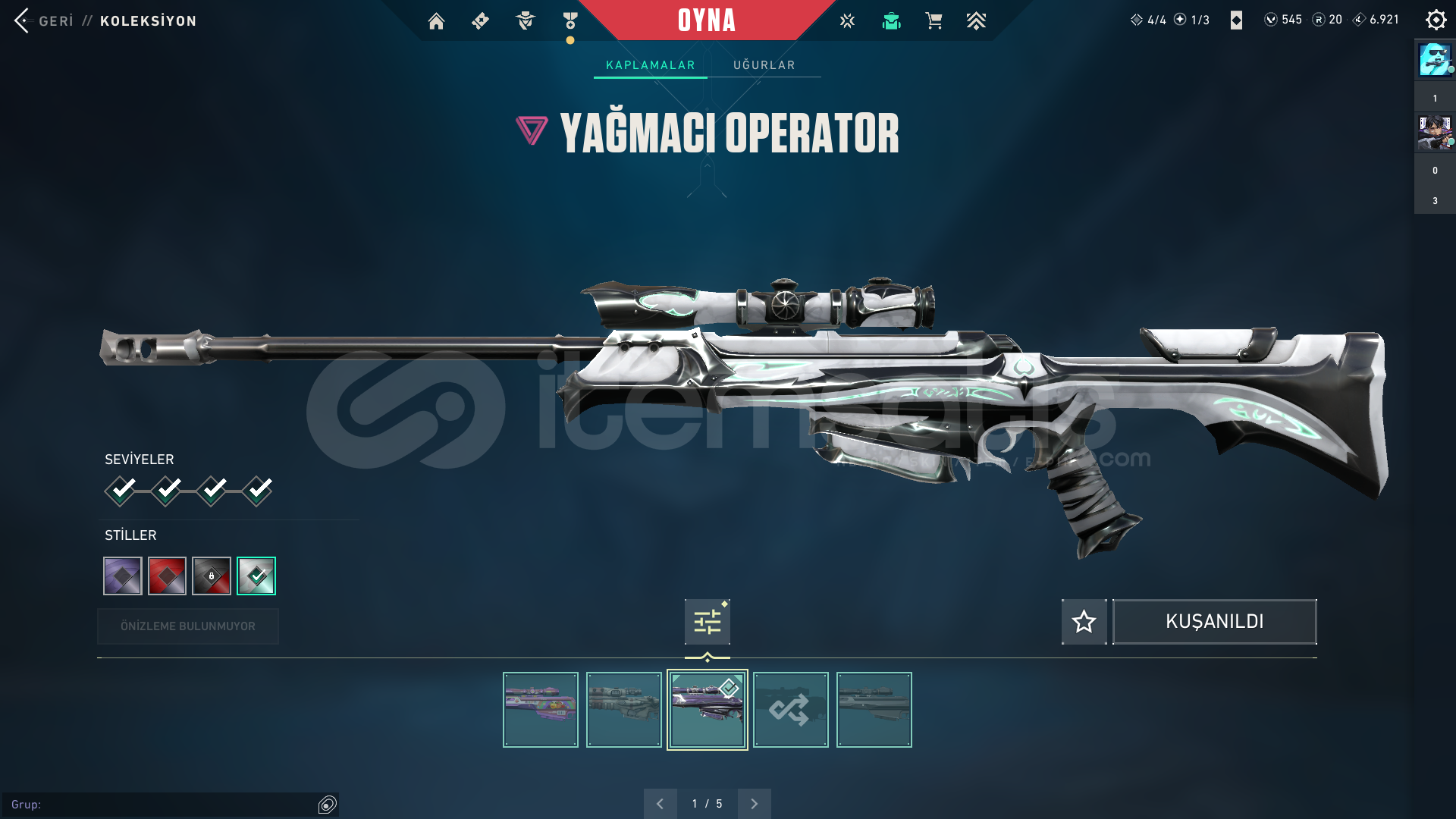 HESAP İLK MAİLİYLE BİRLİKTE TESLİM EDİLECEKTİRRANK : ELMASSKİNLER⭐ VANDAL : KURONAMİ , EX.O , ASİL , ARCANE⭐ PHANTOM : CHAMPİONS 2024⭐ BIÇAK : 5. YEARS , ÖZEL HAREKAT KELEBEK , TORK BOBİNİ⭐ OPERATÖR : YAĞMACI⭐ GUARDİAN : ONİ⭐ JUDGE : FATİH⭐ GHOST : ULUPENÇEHESAPTA EKSTRA OLARAK 545 VP, TORK SETİ + 2 BATTLE PASS VARDIR ÖZEL OL...