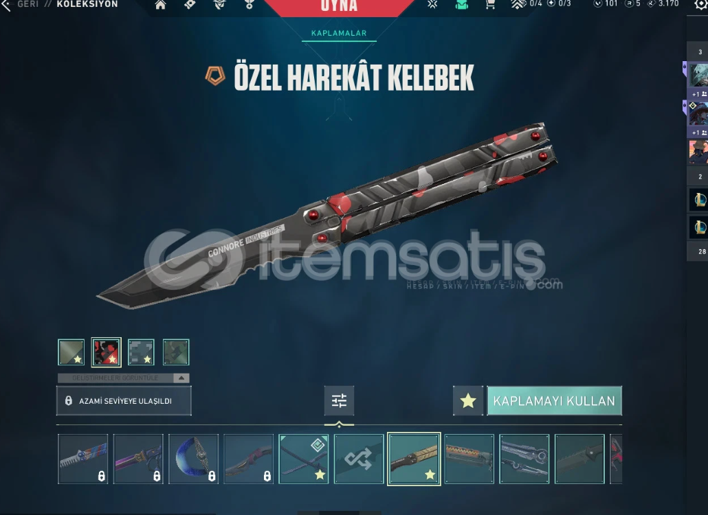 Hesap İhtiyaçtan Satılıktır 70+ Level Olup hesapta fotoğraflarda bulunmayan 5. Yıl Özel Valorant set ve yağmacı ghost bulunmaktadır.Random sahibi belli olmayan hesaplarla karıştırmayın ilk ve tek sahibi benim.VANDALKaosKökenOniTorkPHANTOMChampion 2024FatihÖzel HarekatNanokırılmaUzay GeçidiBIÇAK5 . YIL ÖZEL BIÇAKExo katanaÖzel Harekat KelebekUzay Geçidi Bıcak...