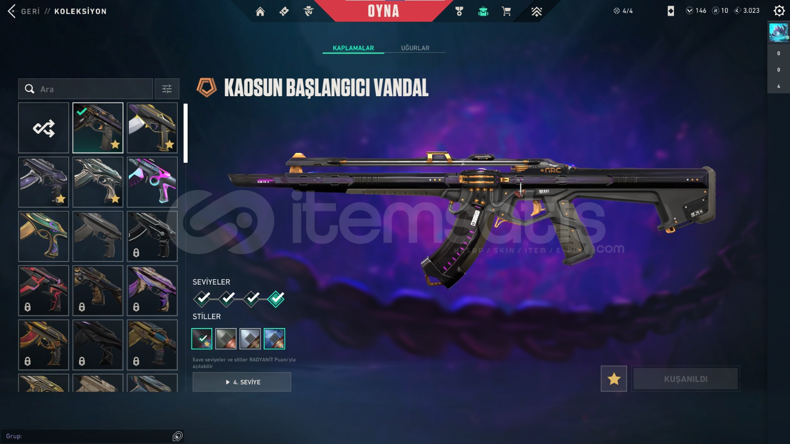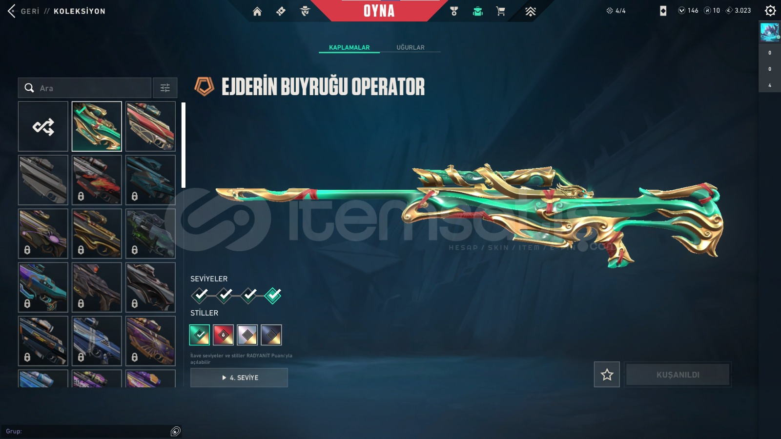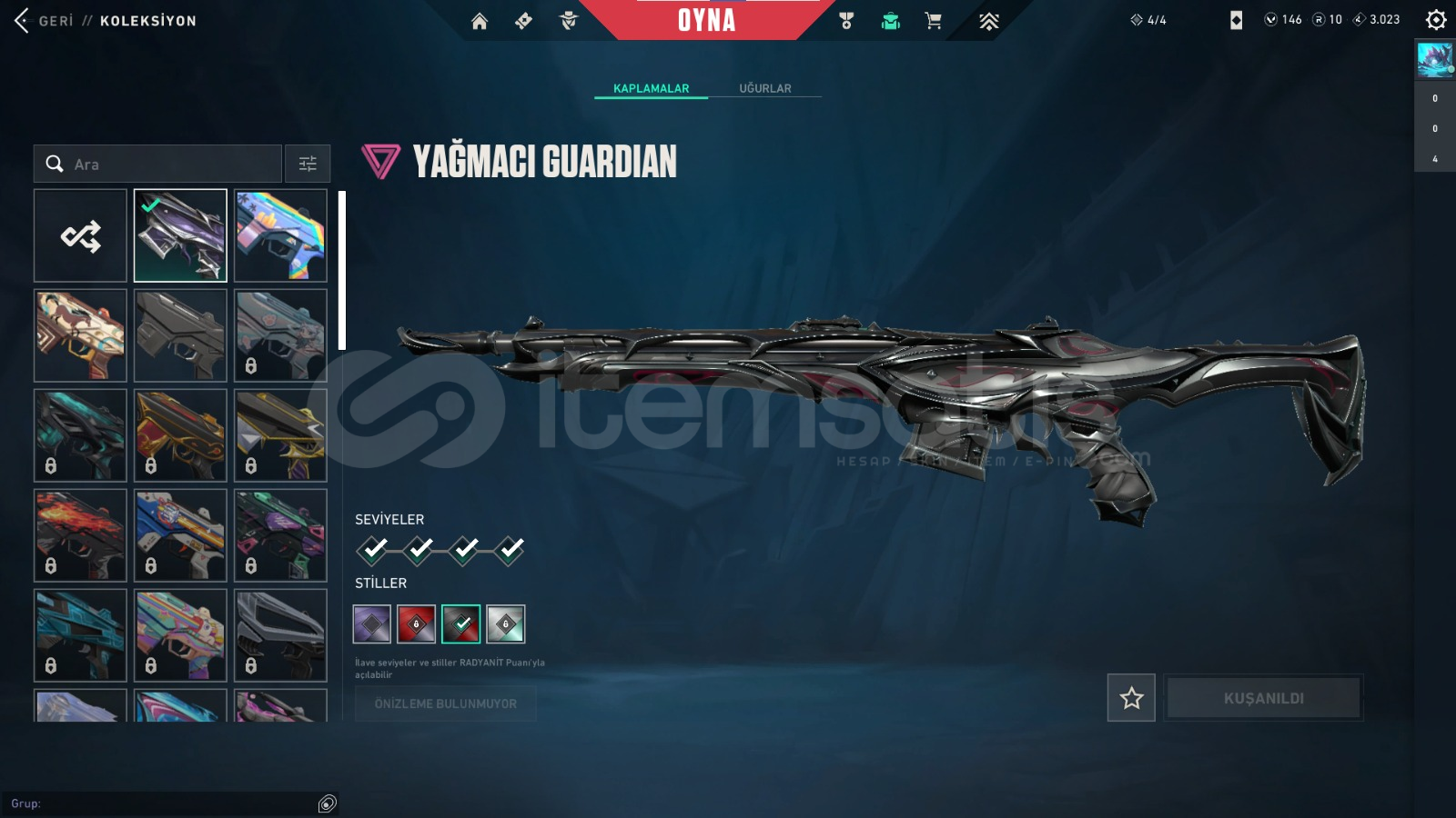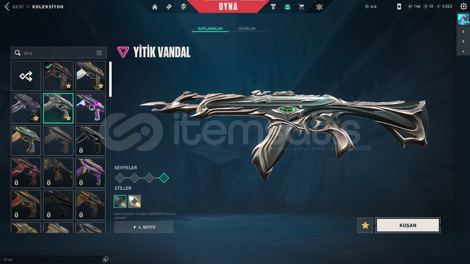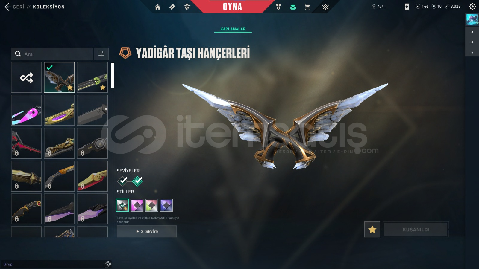 HESABIN İLK MAİLİ VARDIR VE İLK MAİL İLE TESLIM EDILECEKTIR.PAZARLIK VARDIR DM YAZINIZZZBIÇAKLAR;Rgx kelebekYadigar taşı hançerleriVANDAL;kaos vandalyağmacı vandalyitik vandalasil vandalPHANTOM;gaia phantomışık muhafızı phantomCLASSİC,asil classicSHORTY;ışık muhafızı shortySHERİF;kaos sherifOPERATÖR;ejderin buyrugu operatörSPECTRE;anomali spectreısık muh...
