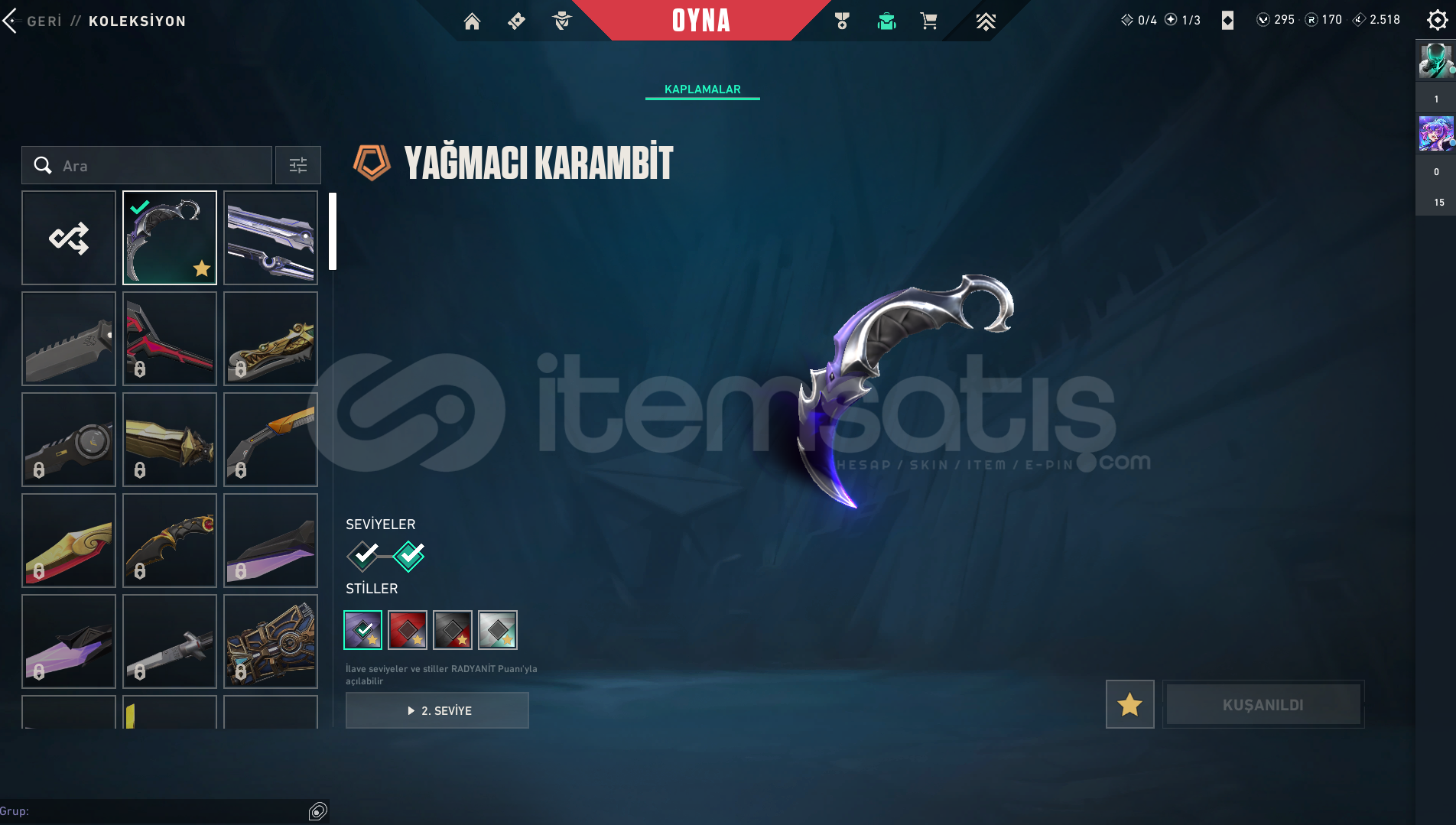 Hesap Bana aittir herhangi bir geri alınma vs olmıcaktır bir problem olursa yardımcı olurumHesapta:Yağmacı karambitArcade phantomEvori ghost Uzay geçidi frenzyGün tutulması stıngerAy gezgini bucyUzay geçidi bulldogAy gezgini guardianEjderin buyruğu vandalgibi skinler vardır bir sorunuz olursa yardım edilir