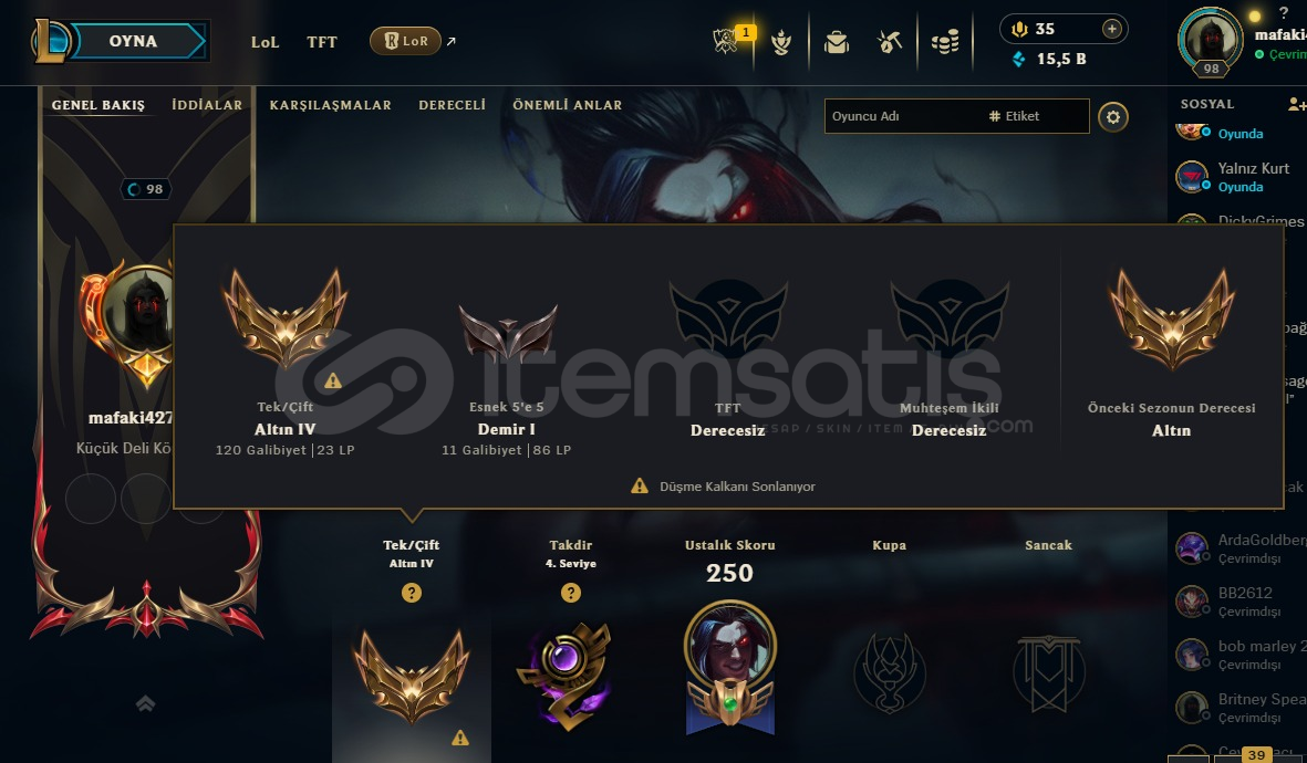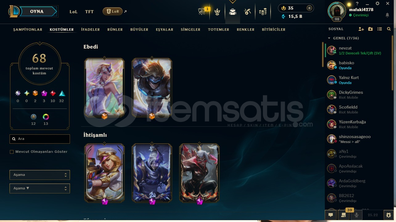 lol ve valorant hesabi vardir