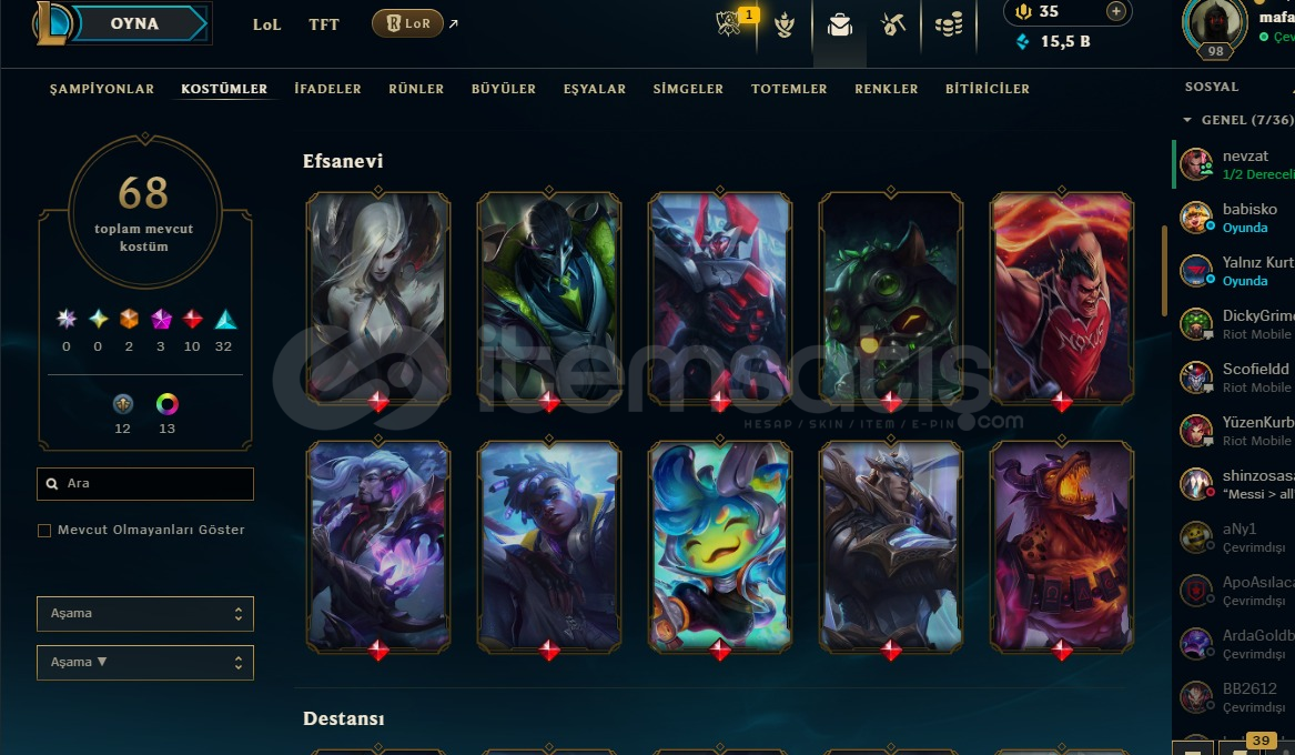 Herkese selamkendi main hesabimdirlol ve valorant hesabi vardirilk mail vardir ama kendi mailim teslimini yapamamtr sunucusudur3 bicaklidir fotolarda bellidirpara birimi euro ama isterseniz degistirirsiniz