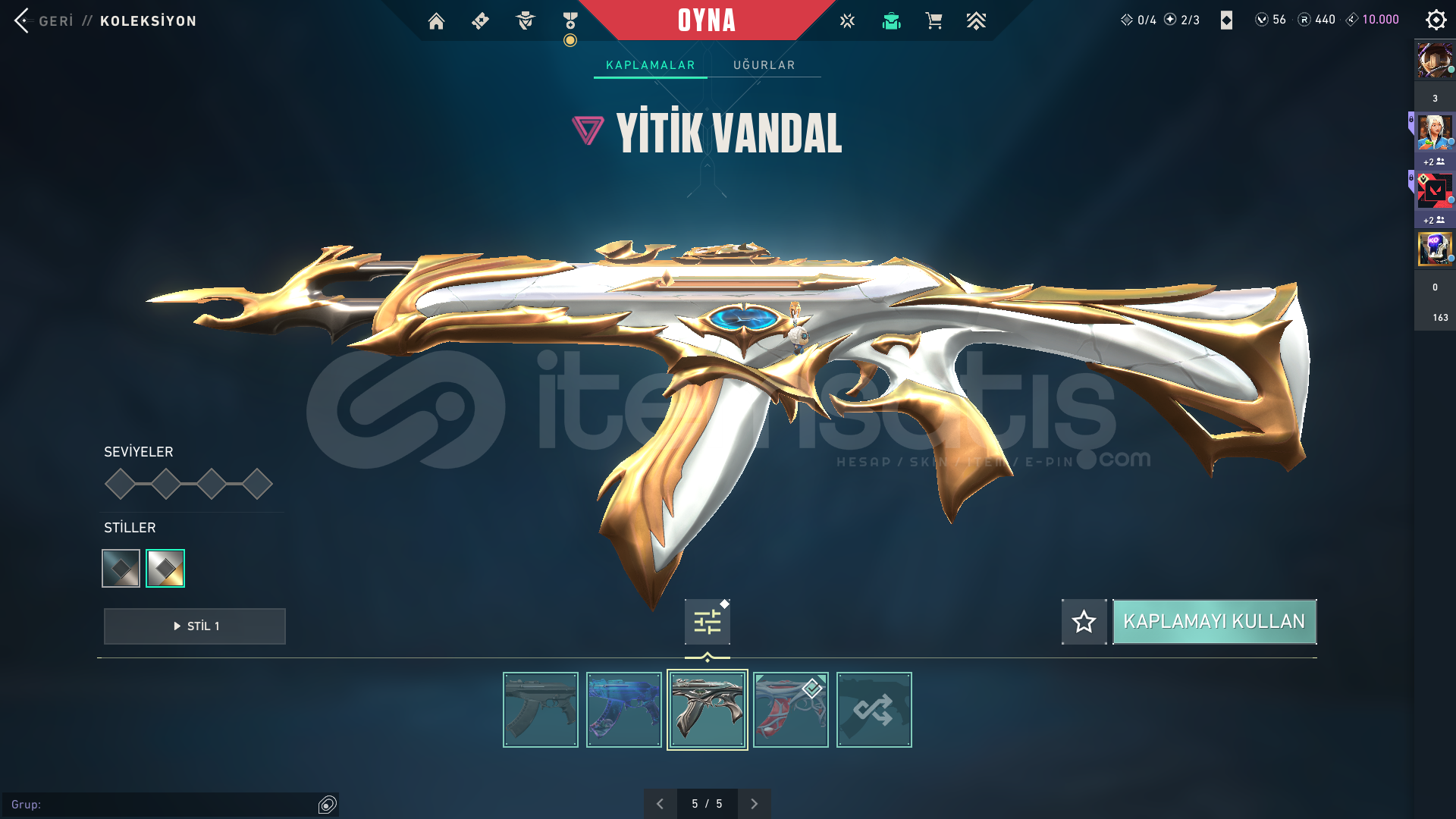 Altın 2 hesabımVandalda Gaia ve YitikBıçak olarak 5 years/beta remasteredPhantomda özel harekat ve Blastx varGhost ve Sheriffte Sihirpunk varSpectrede yerçekimsel uranyum nöroateşleyici var2 kez savaş bileti alındı hepsinin skinleri mevcutÖLÜCÜLER YAZMASIN TERTEMİZ İLK SAHİBİNDEN HESAPTIR