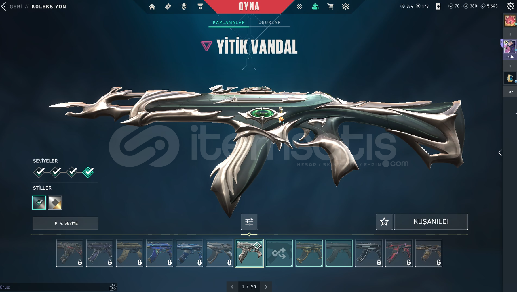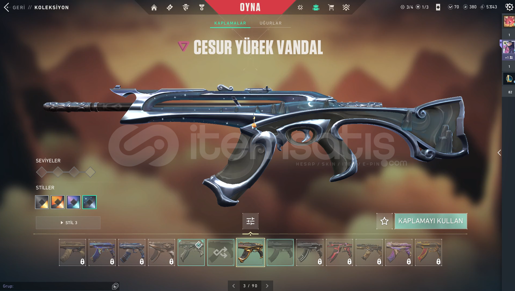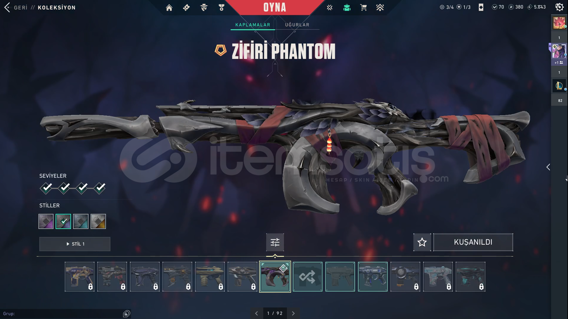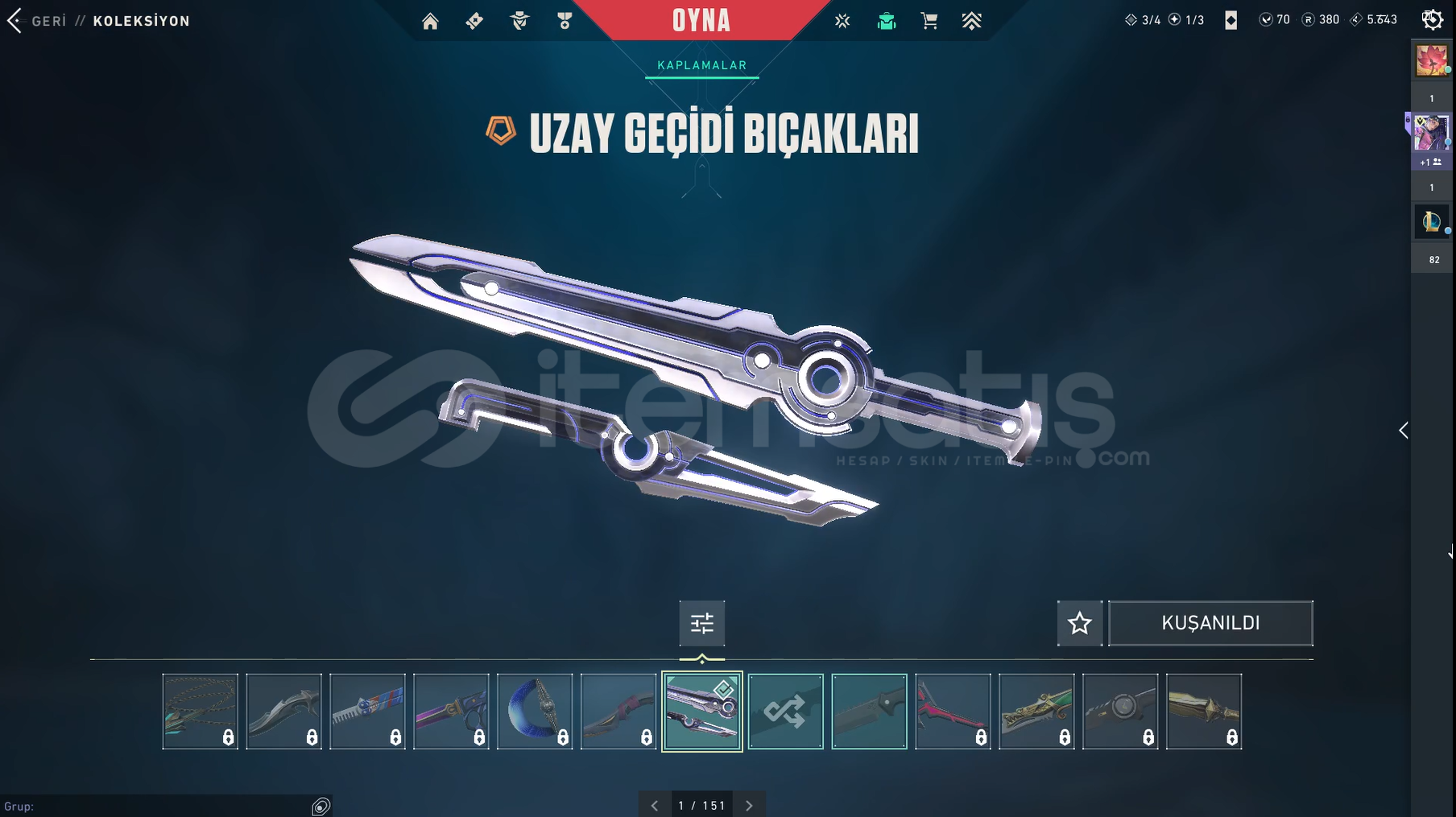Skinler:Vandal: Cesur Yürek, YitikPhantom: ZifiriBıçak: Uzay Geçidi (bp skini)380 Radyanit Puanı ve 70vp bulunmaktadır1x Battle Pas67x Banner (Sancak)3x Donatı44x Sprey