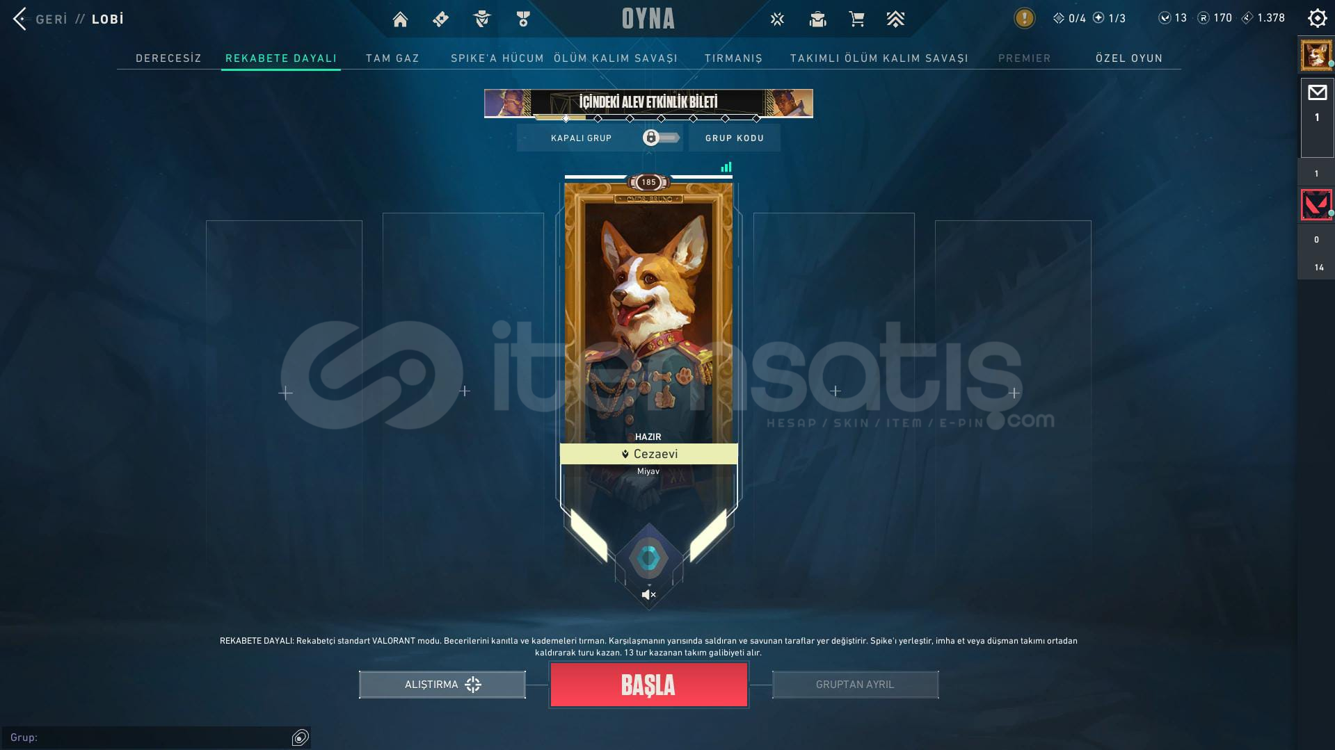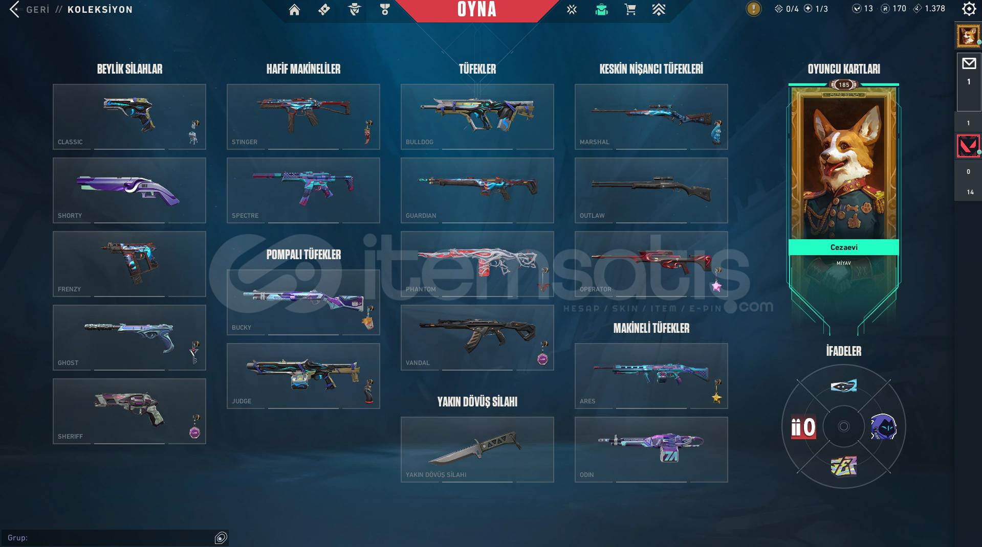 Hesapta ban riski yokturHesap rankı PLAT 1 max ELMAS 1 e kadar çıktıHesaptaki SKİNLERExo vandalZamanın ötesi vandalFaz koruyucu vandaİyon vandalGaia phantomProtokol sheriffCesur yürek ghostUzaylı avcısı bıçak2 tane battle pass pazarlık hafifte olsa vardır