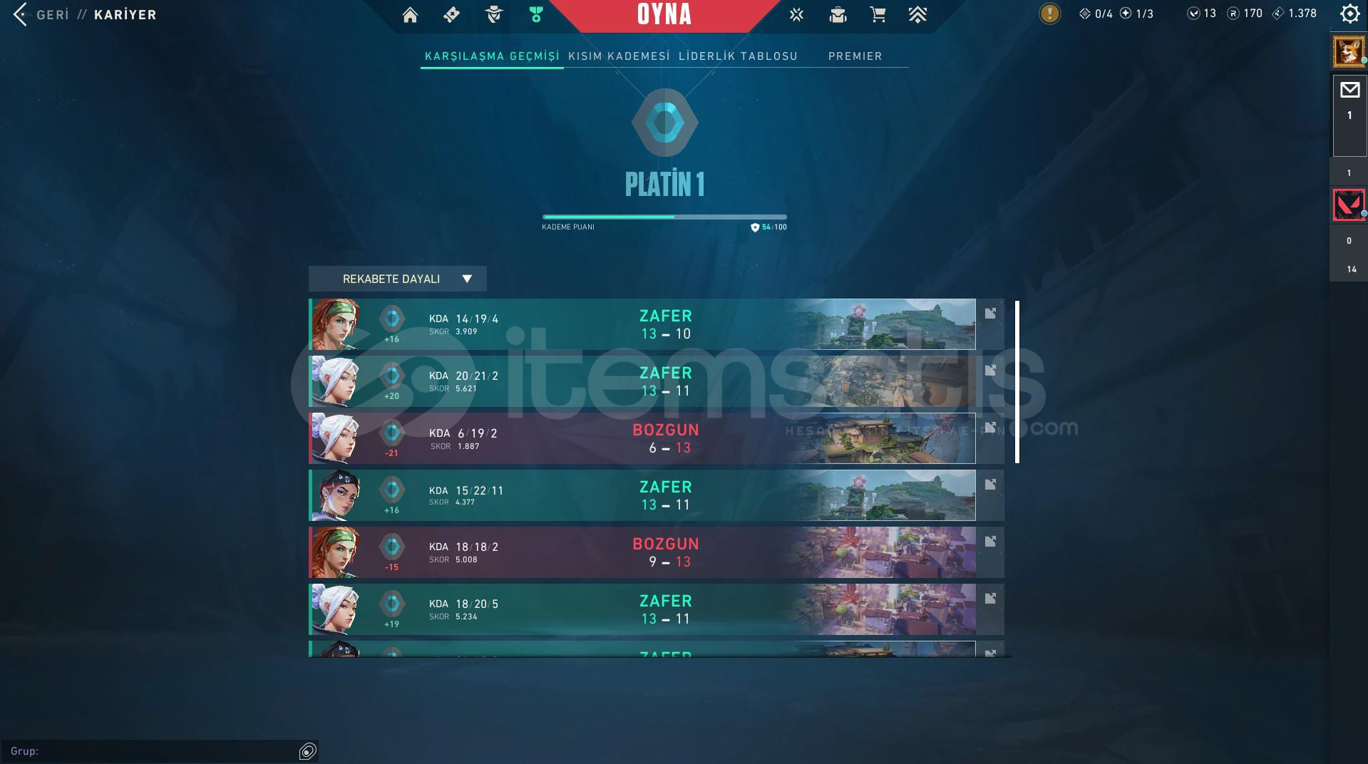 Hesap rankı PLAT 1 max ELMAS 1 e kadar çıktı