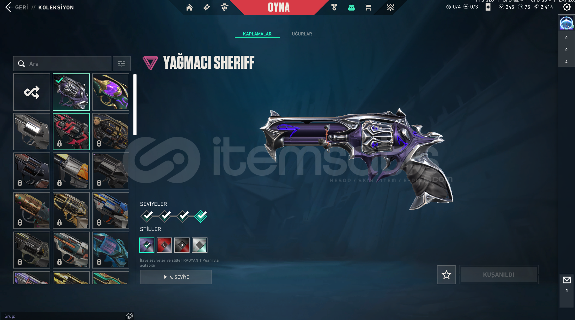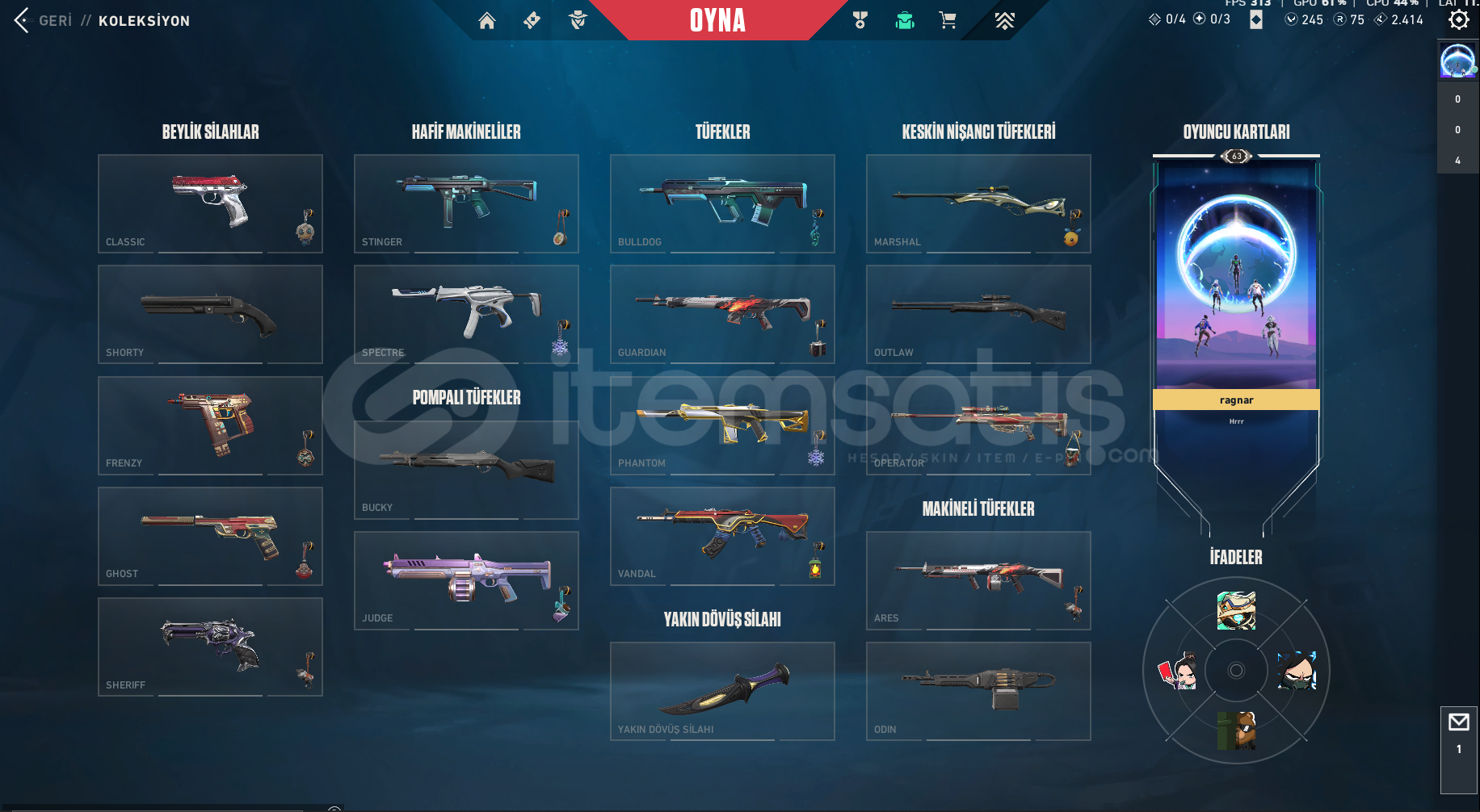 Hesabın ilk sahibiyim. Uzun zamandır oynamadığım için satıyorum. Hesaptakiler: Asil phantom Oni vandal Yağmacı şerif İyon spectre 2 adet battle pass bıçağı.