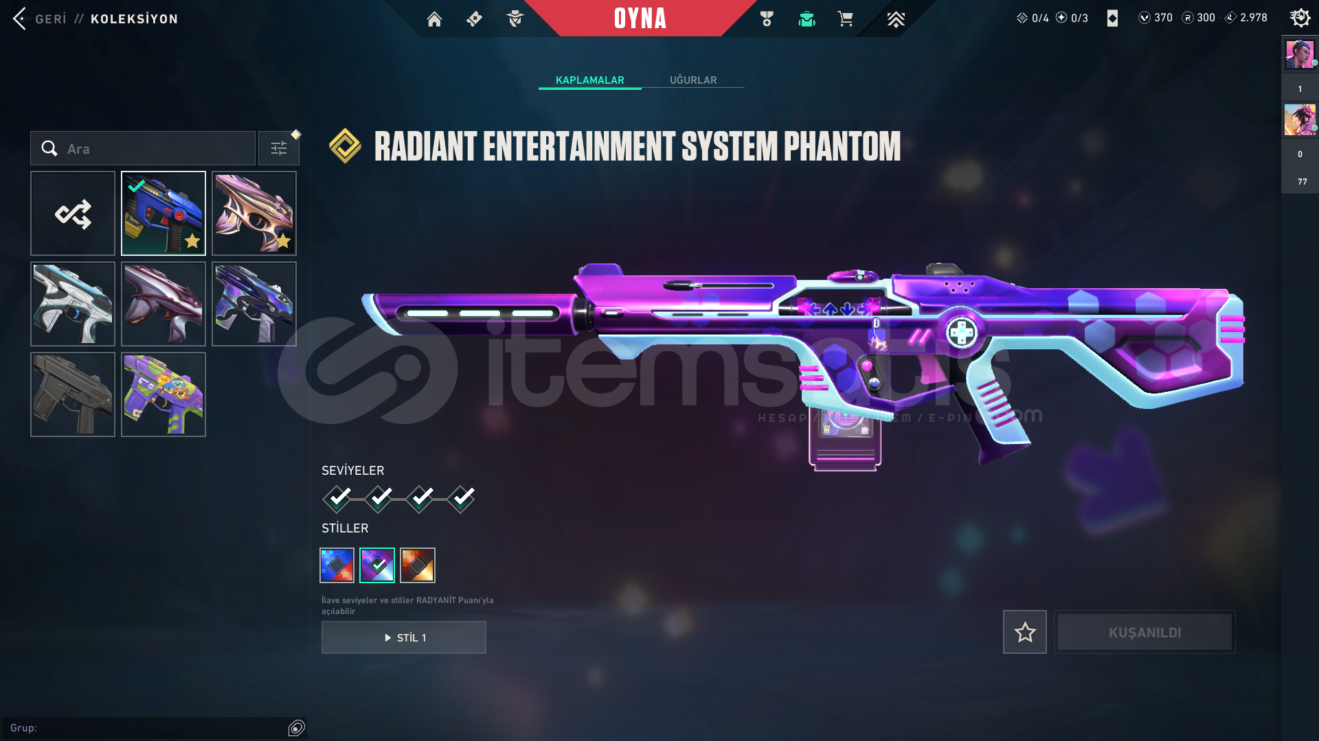 içinde şuanda 370 vp 300 radianit 3000 kingdom kredisi bulunmaktadır