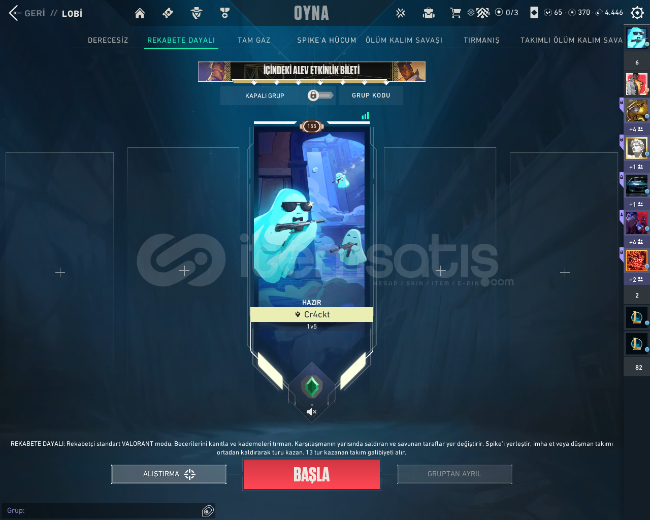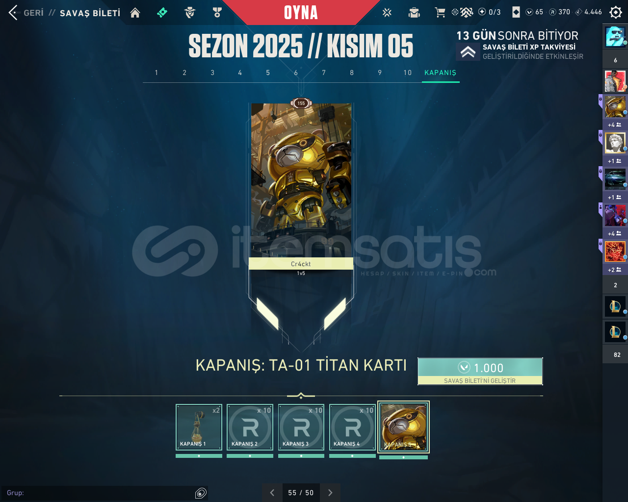 Oyundan Sıkıldığım İçin Zararına Satıyorum Ciddi Alıcılar Yazsın İLK GELEN ALIRGaia VandalSoğuk Çelik VandalKaos PhantomBattle Pass vsYücelik 1Peek Yücelik 2155 LVLHerhangi bir problem yaşamıcanızı temin ederimGece Pazarıda İyidir