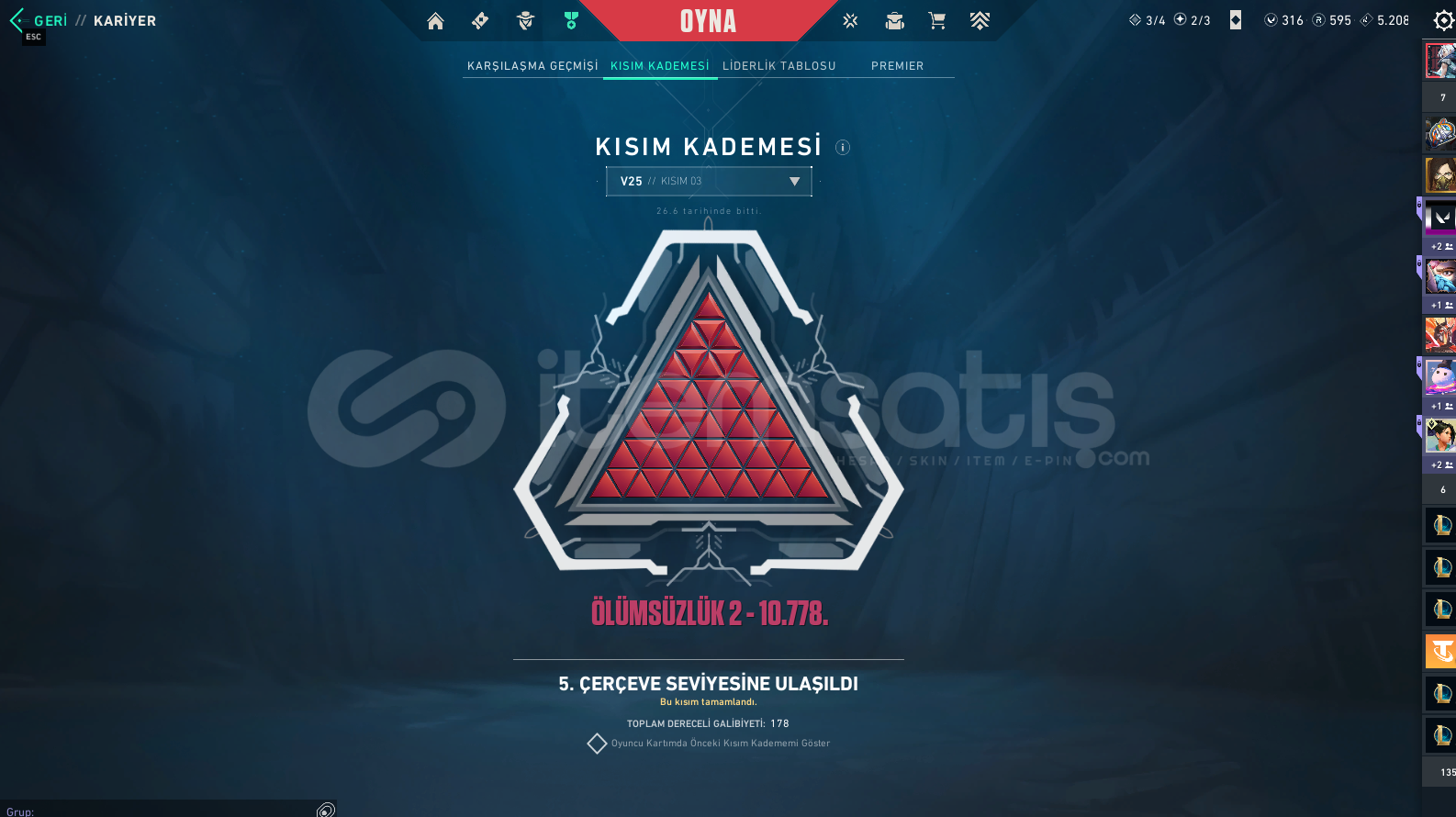 Kendi hesabım ihtiyactan dolayı satıyorum İmmortal 2 güncel rankı her sezon immo görmüş