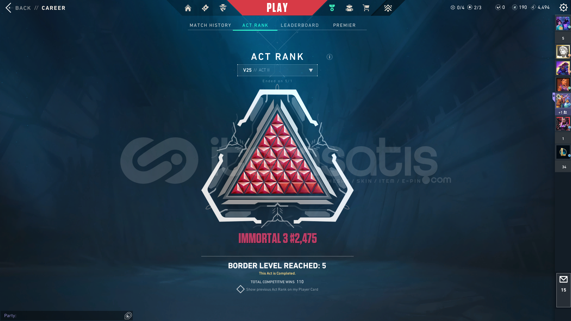 Hesabın güncel rankı İmmo 1 Peaki İmmo 3'dür.