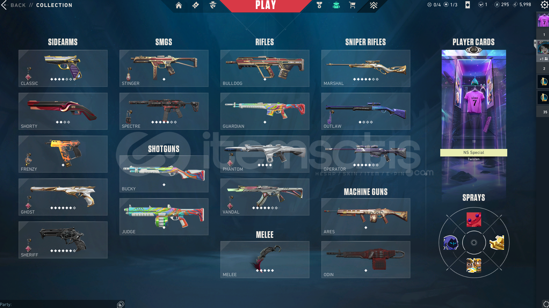 5 Sezon İmmo bitirmiş son 2 sezonu Yücelik hesapClasic - AsilGhost - FatihŞerif - İyon, YağmacıSpectra - Özel HareketPhantom - Asil, İyon, AnomaliVandal - Yağmacı, Ejder, Yıldız, Oni, AsilMarshall - FatihOperator - Yağmacı, EjderOutlow - PrizmaBıçaklar - Yağmacı Karambit, RGX Kelebek, Jett Bıç, Ateş Yelpaze, savaş bileti balta ve karambitHesap 213 lvl ilk sahibiyim. 4 sezon immo...