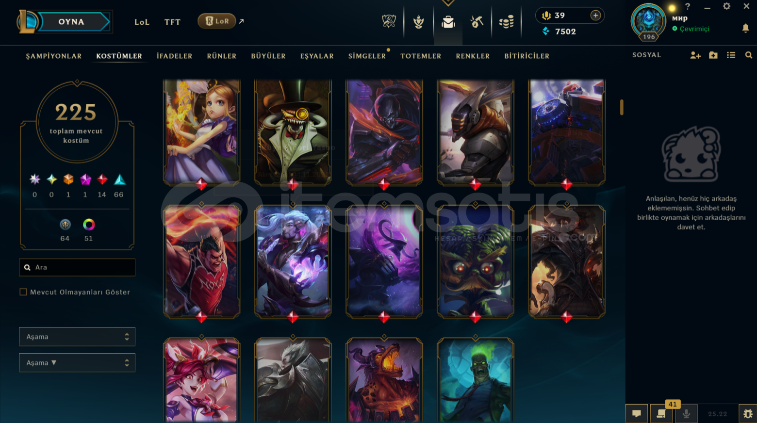 BİR ADET DE ESKİ SAVAŞ BİLETİ BİTİRİLMİŞTİR, 122 vp 645 radyant var , lol hesabı 2014 den kalmadır bazı nadir skinler mevcuttur