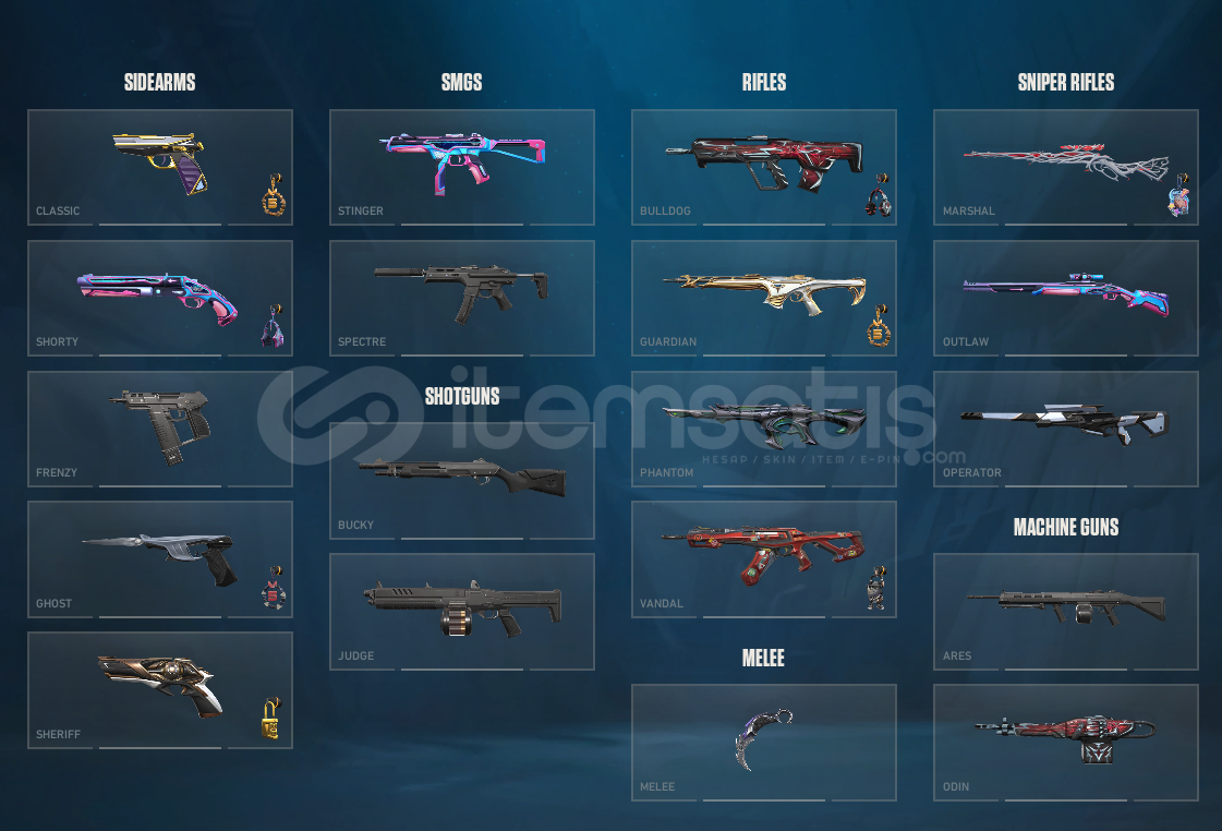 Hesabın içerisinde bulunanlar aşağıda verilmiştir.OraByONETAP SET FULLClassic : AsilGhost : CyraxSheriff : Zamanın Ötesi , OraByONETAP , BpGuardian : FatihPhantom : OraByONETAP , Helix , BpVandal : Süratcanavarı , OraByONETAP , BpMarshal : GaiaOutlaw : BpOperator : OraByONETAP , Heartbreaker BpBıçak : Yağmacı Karambit , Heart Splitter , OraByONETAP KnifeDiğer skinler battlepass yada yok zaten ekran görünt&uu...