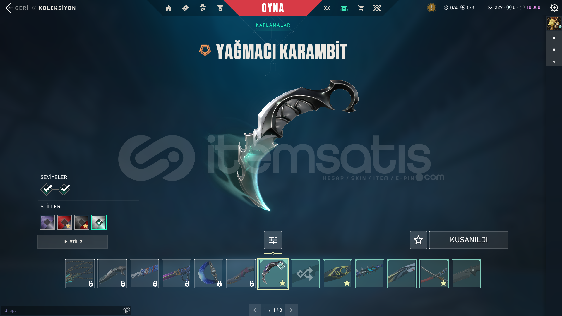vandallar champions 2023/yıldız belası/oni/phantomspectrum ve rgxbıçaklaryağmacı karambit/champ 2023 kunai/gazap/oni bıçağı tek skin olan silahlar ana fotoğrafta gözüküyor
