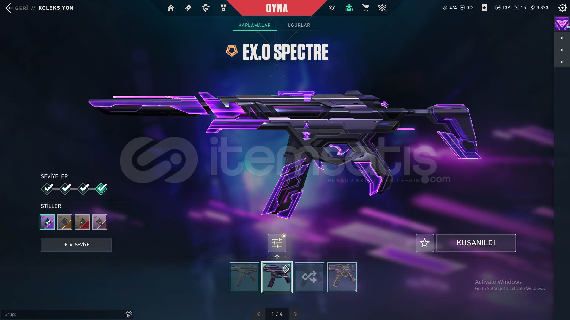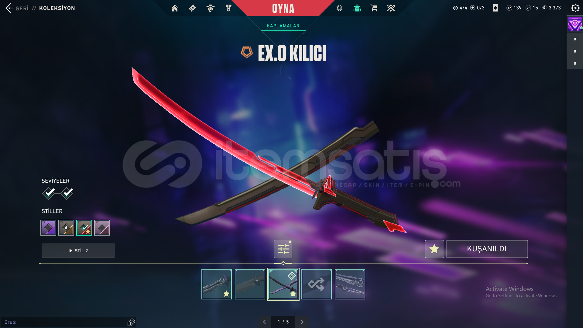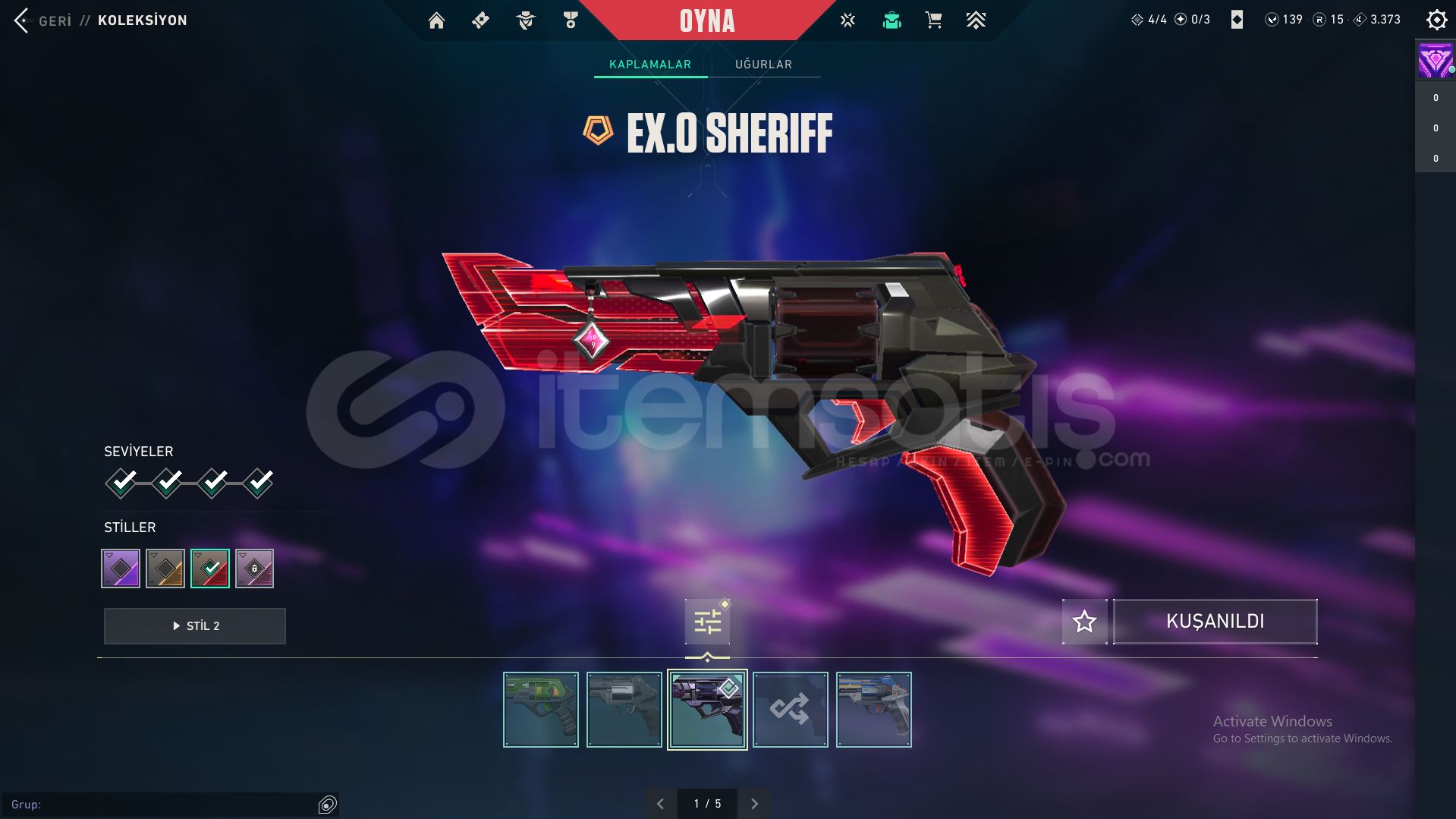 Hesaptaki Skinler: Exo Vandal, Asil Vandal, Exo Kılıcı, Yağmacı Bıçak, Exo Sheriff, Yağmacı Operator, Exo Spectre, Exo Outlaw