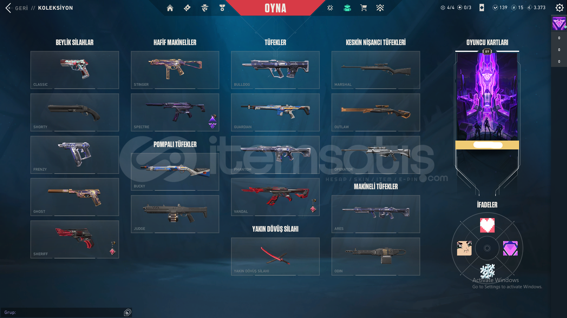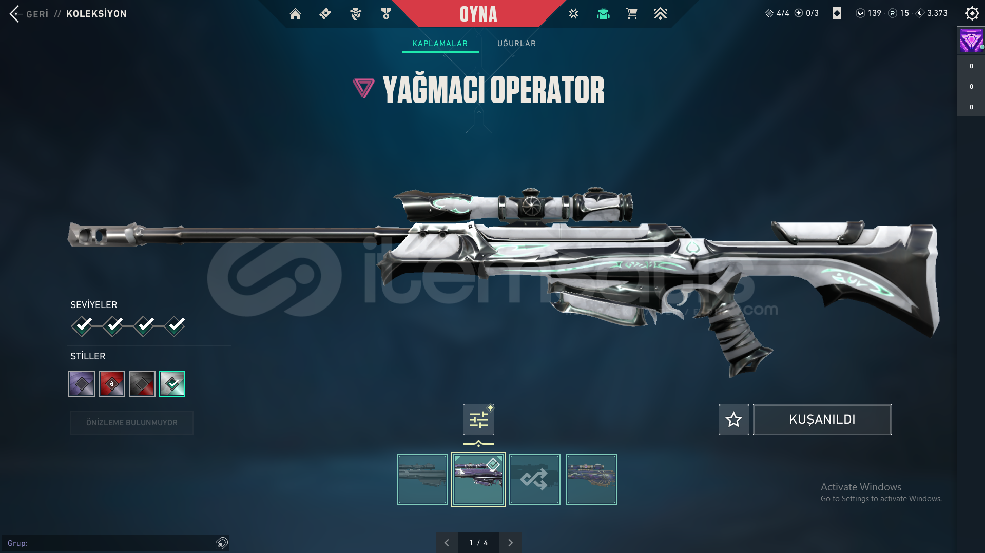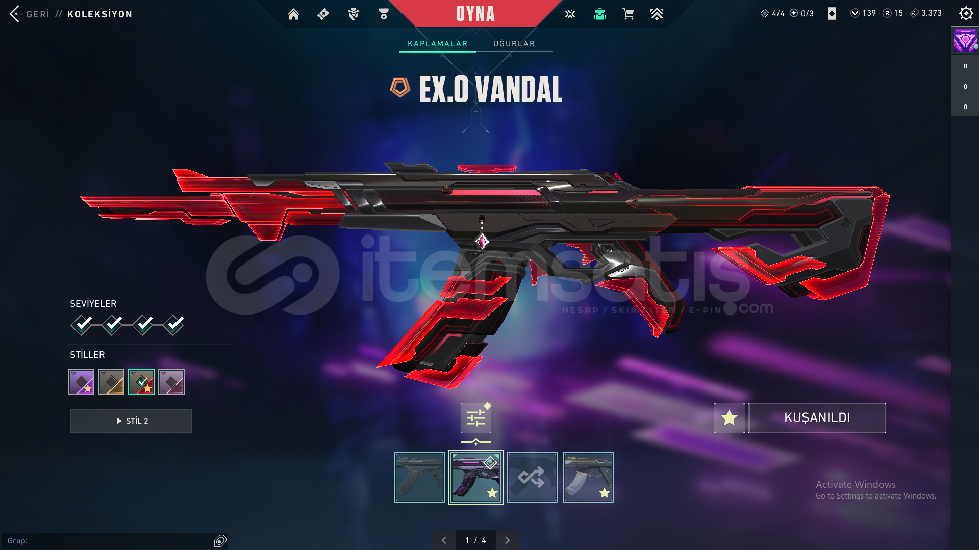 Hesaptaki Skinler: Exo Vandal, Asil Vandal, Exo Kılıcı, Yağmacı Bıçak, Exo Sheriff, Yağmacı Operator, Exo Spectre, Exo Outlaw