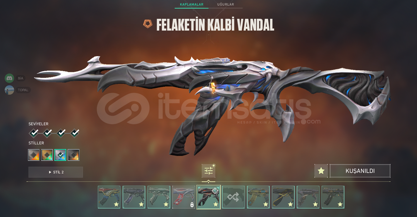 felaketin kalbi vandal , arcane vandal , yitik vandal ,yağmacı vandal,champions 23 vandal,ejder vandal,faz koruyucu vandal, kaos vandal,oni vandal