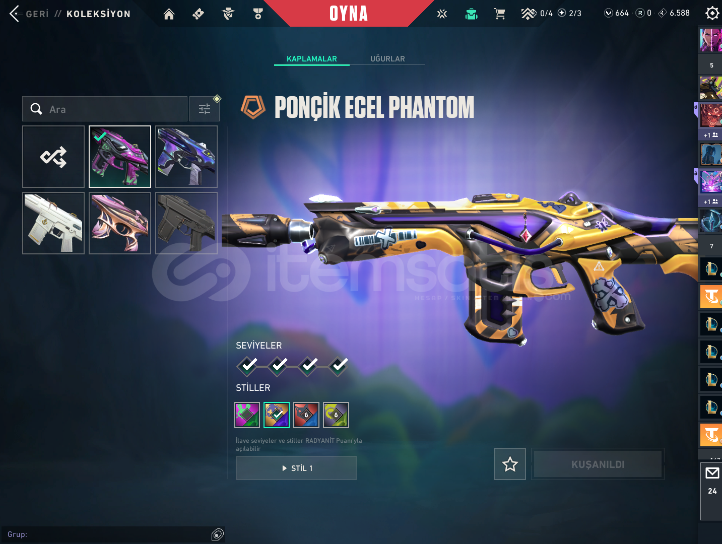 Tüm silahlarda skinler mevcuttur (ares hariç)
