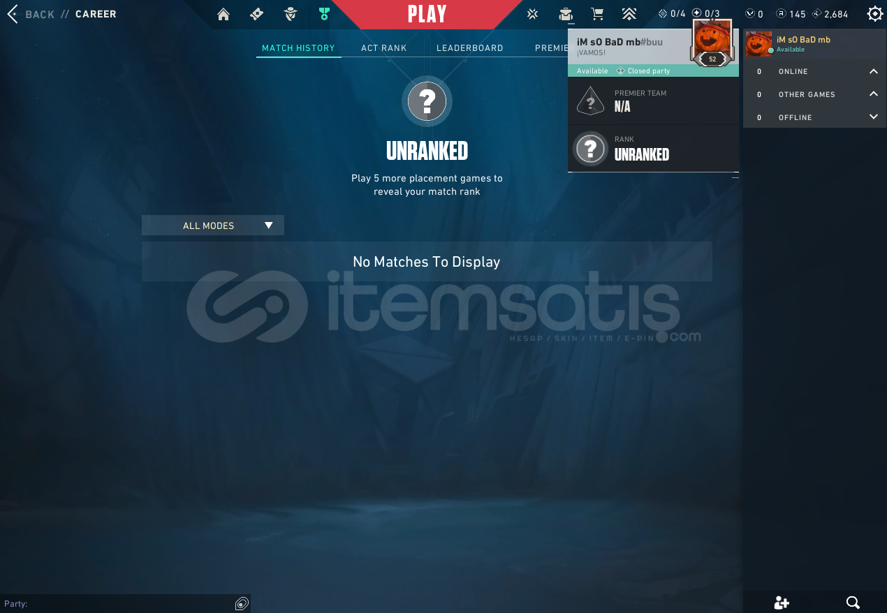 🔥 1000 TL'ye Hesap Fırsatı! Radiant Koçun Eski Smurf Hesabı 🔥Valorant’ta hızlı bir başlangıç yapmak ya da uğurluk için temiz bir hesap arıyorsan, tam yerine geldin! Satılık hesap 52 seviye, hiç skin yok, tamamen uğurluk (luck) için kasılmış, radiant seviyesinde koçluk yapan oyuncunun eski smurf hesabıdır.Bu hesapla birlikte sıfırdan tertem...