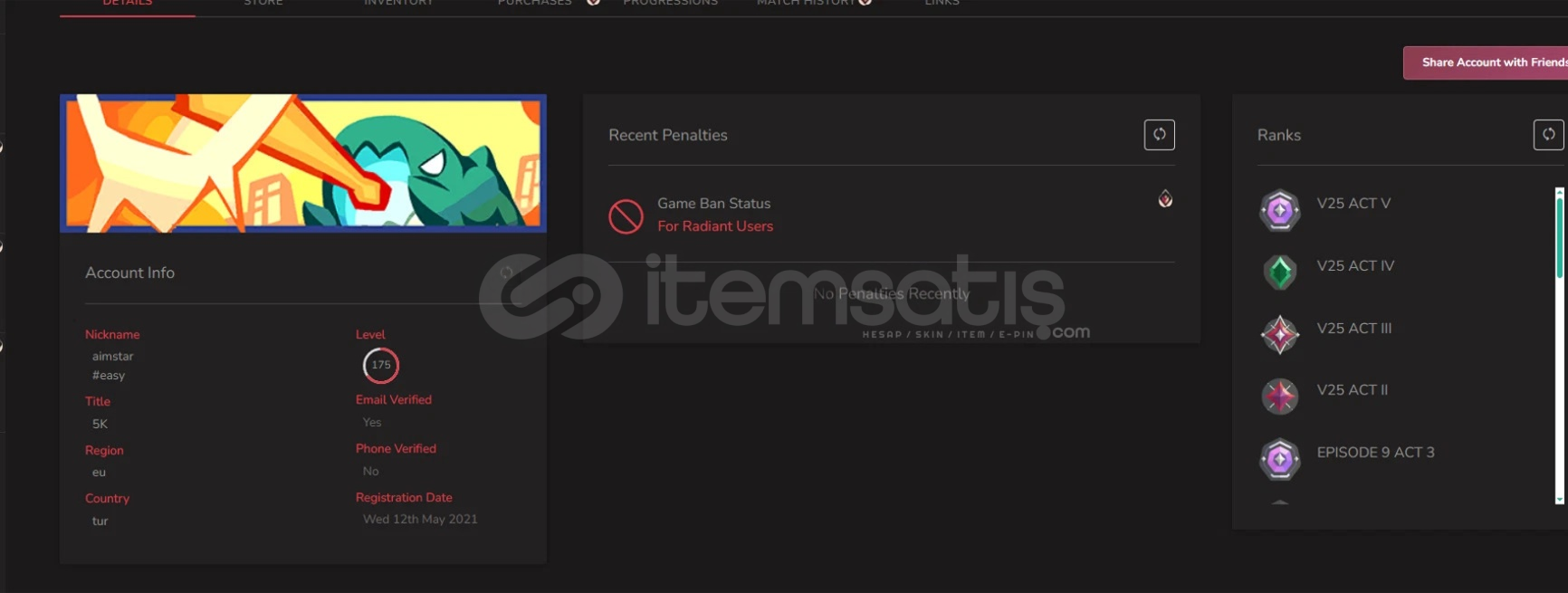 • Hesabın rankı elmastır ve daha önceki sezonlarda immo 200rr görmüştür birden fazla immortal uğurluğu vardır.