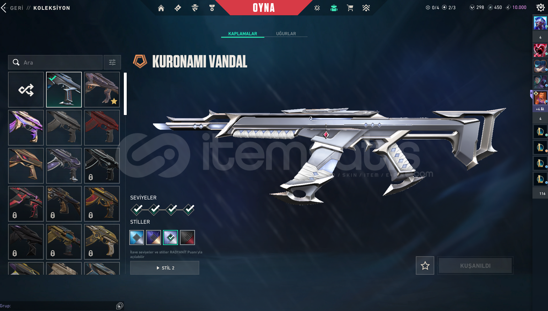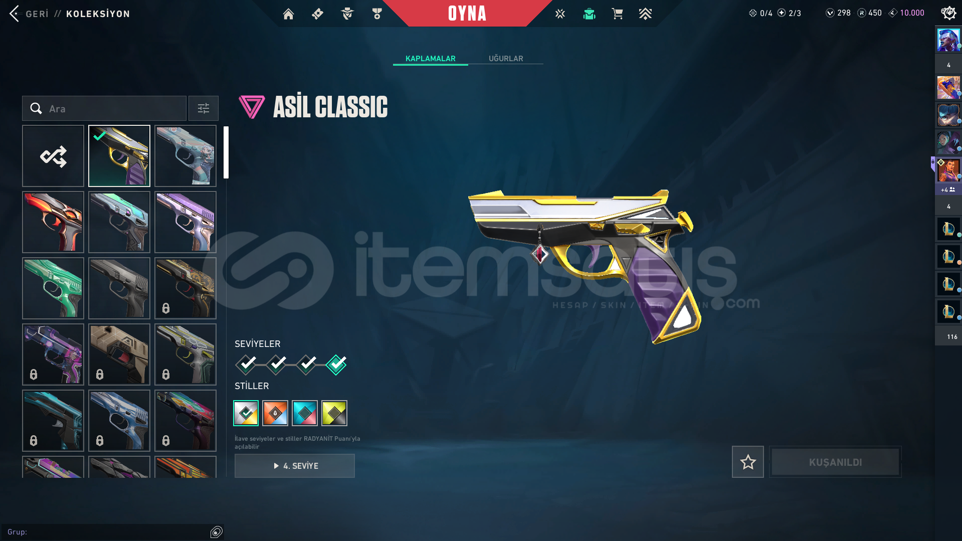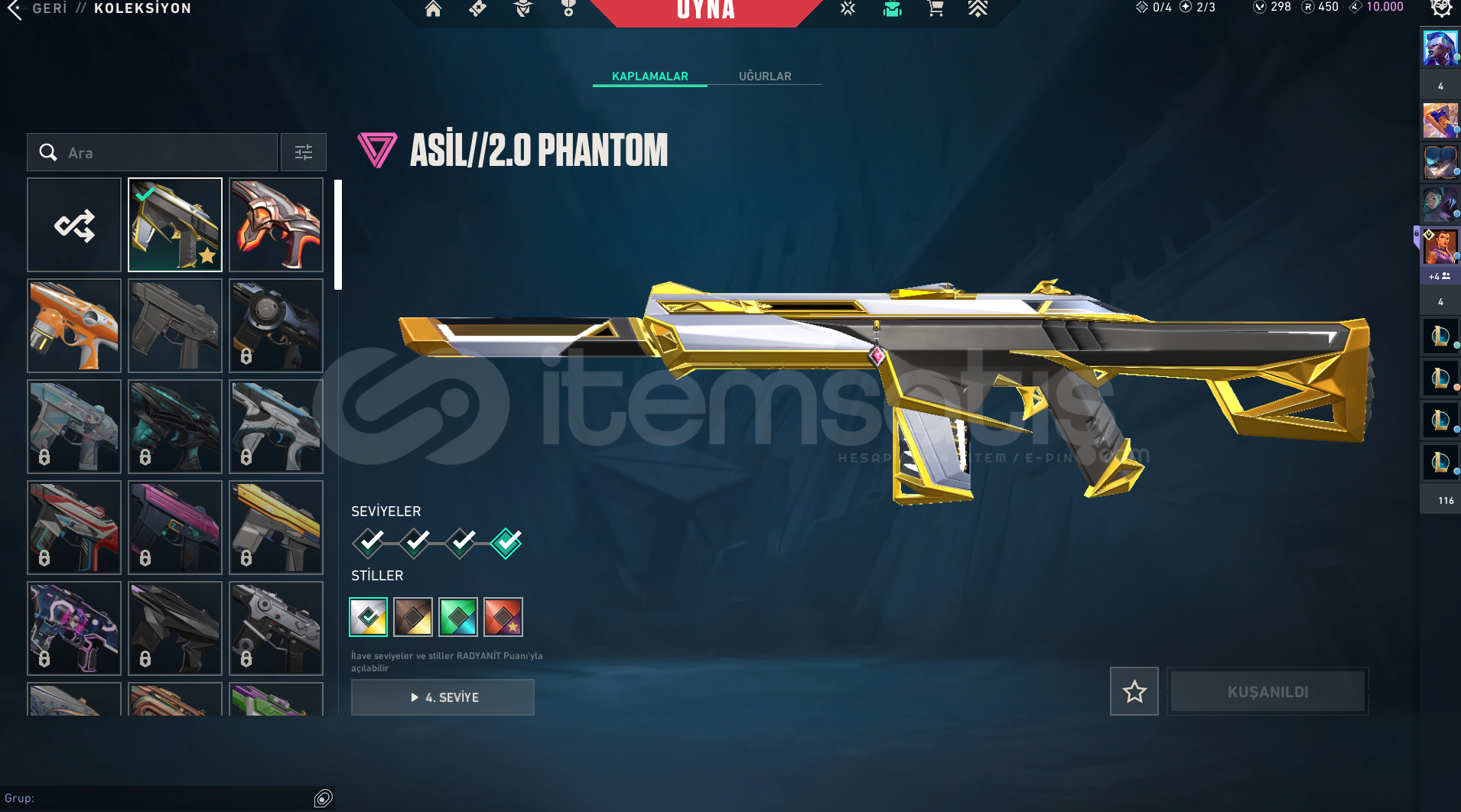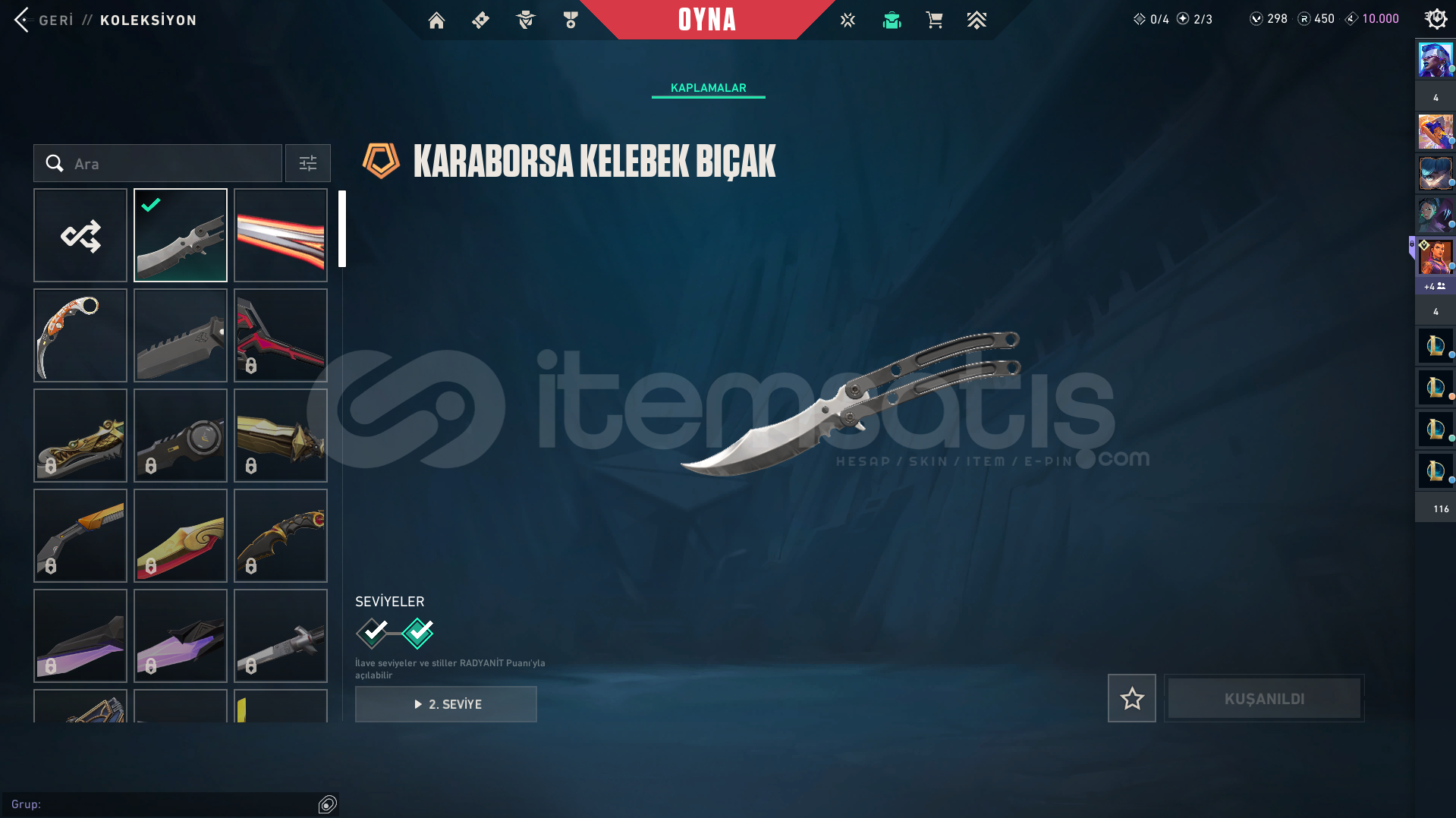 -236 lvl 3 kere immo olmuştur.-6 adet vandal deseni.-karambit , kelebek bıçak desenleri-asil clasic tabanca-yağmacı sheriff-asil phantom-delipop operatör-vandal desenleri (kuronami , yağmacı , ulupençe , ejder v.b)-içinde 300wp vardır-aktif rank gümüş 3-ve birçok silah desenleri mevcuttur.-içinde 450 radyanit puanı vardır.-dolu ve emek verilmiş bir hesaptır pazarlık sünnettir i...