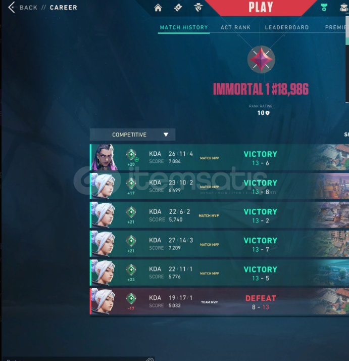 VALORANT İMMO1 HESAP FRESH YÜKSEK KDA