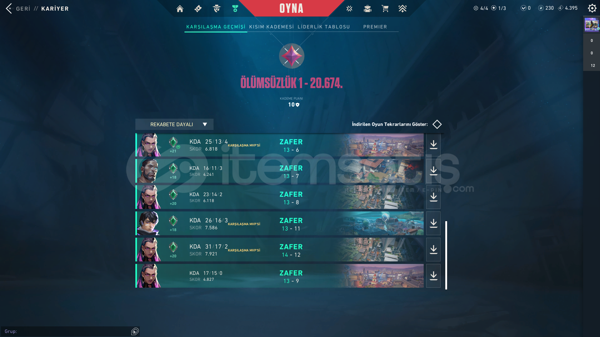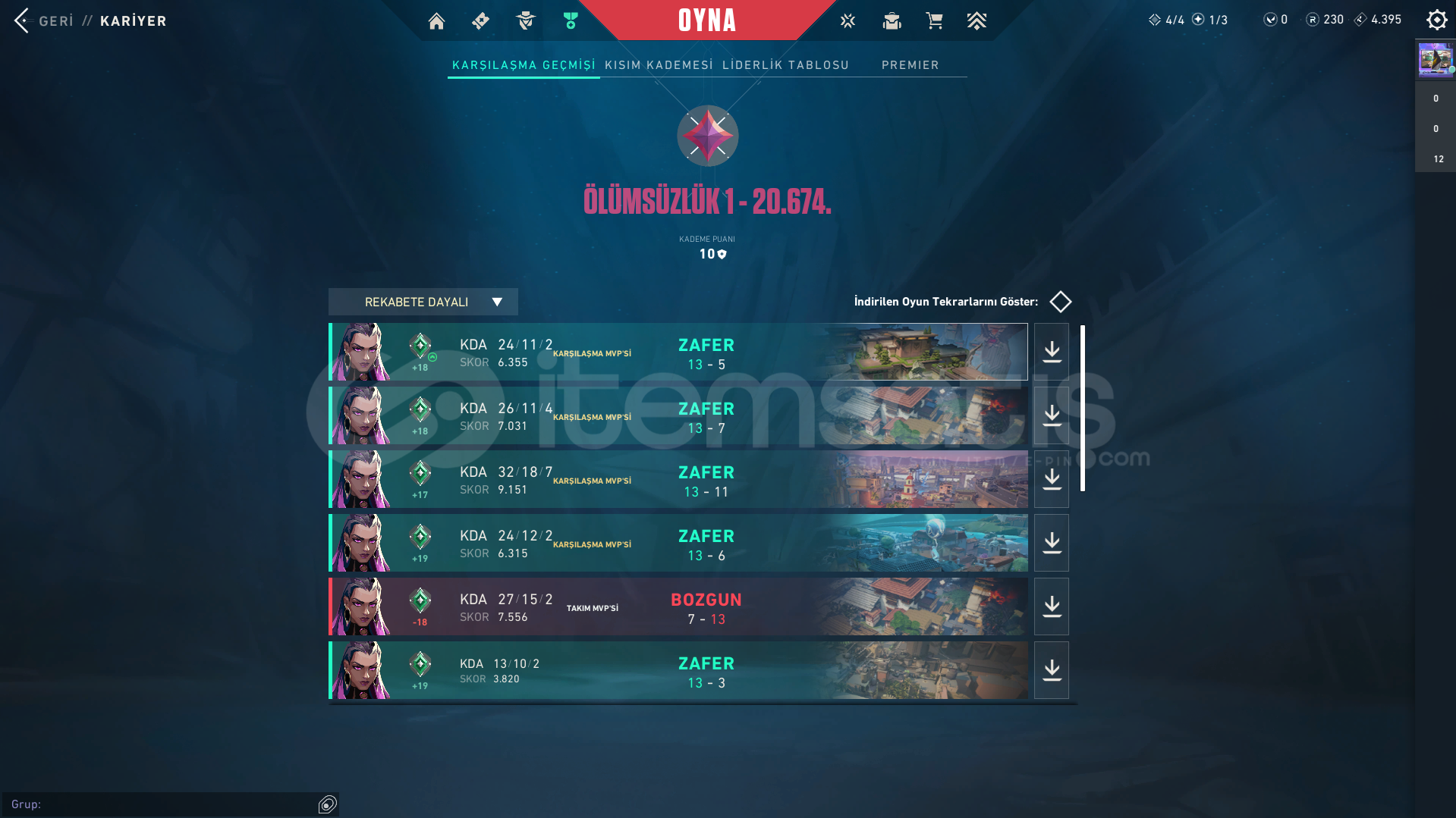 -2 adet rank düşmemek için kalkan hakkı bulunmaktadır.