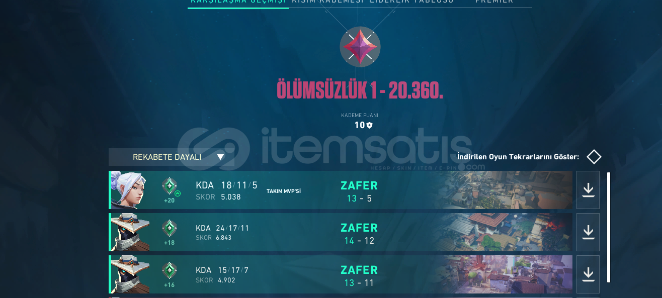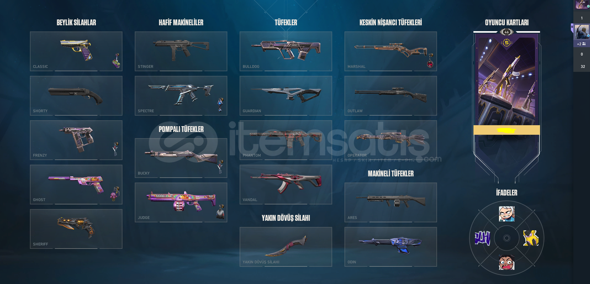 Hesap Immortal 10kp 46leveldir hesap tertemizdir ban riski yok herhangi bir ban kaydıda yoktur tamamen fresh acc tarzıdır!HESABIN İÇERİSİNDEKİLER:Zamanın Ötesi VandalDelipop VandalNeptün VandalAsil VandalÖzel Harekat PhantomRadiant Entertainment System PhantomOni PhantomEjder Ateşi OperatörCyrax GuardianSihirpunk MarshallYıkım Elçisi SheriffYağmacı SheriffAsil ClassicKuronami SpectreZifiri Tır...