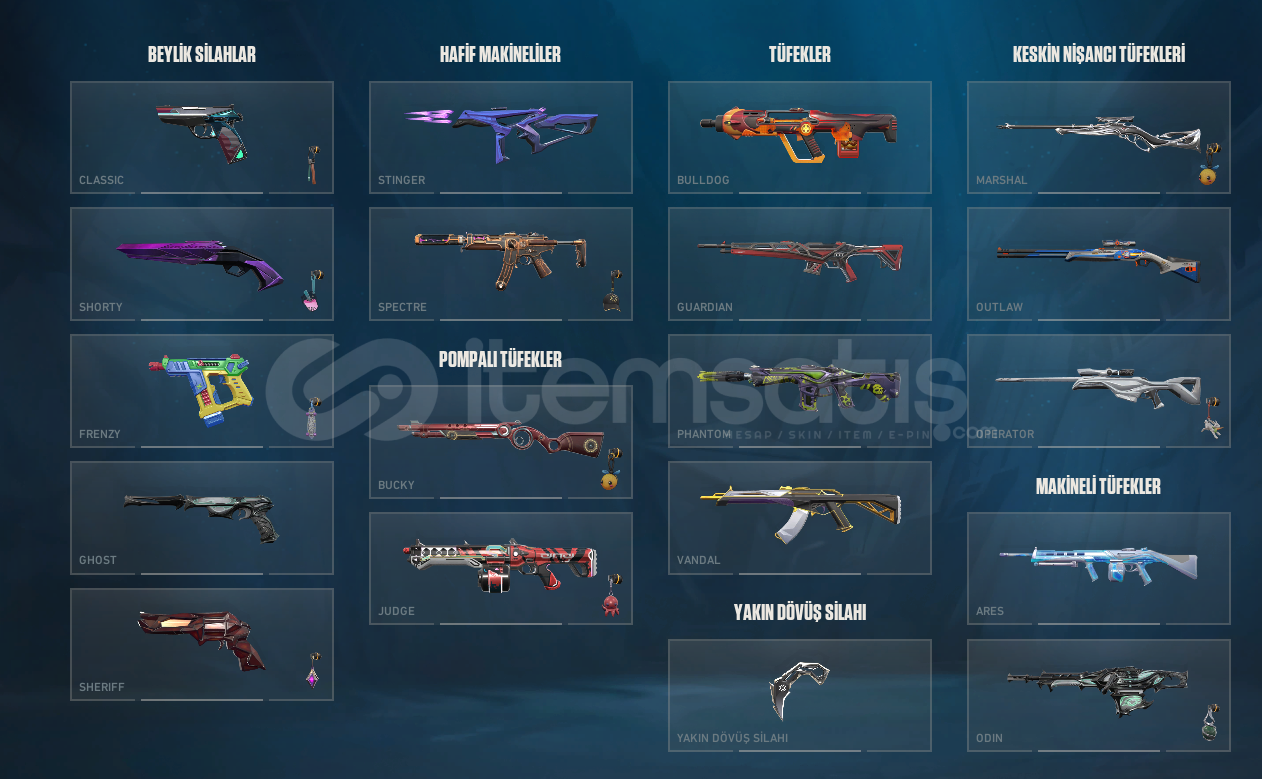 Güncel rank immortal, hesabın içindeki skinleri detaylı şekilde aşağıya yazıyorum. Yalnızca site üzerinden satış yapmaktayım, wp veya dc üzerinden satış yapmamaktayım.Asil ClassicYıldız Belası ShortyBlastX FrenzyYağmacı Ghostİyon SheriffAnomali SheriffCyrax StingerSihirpunk SpectreKöken BuckyDelipop JudgeRadiant Entertainment System BulldogRGX GuardianPonçik Ecel ...