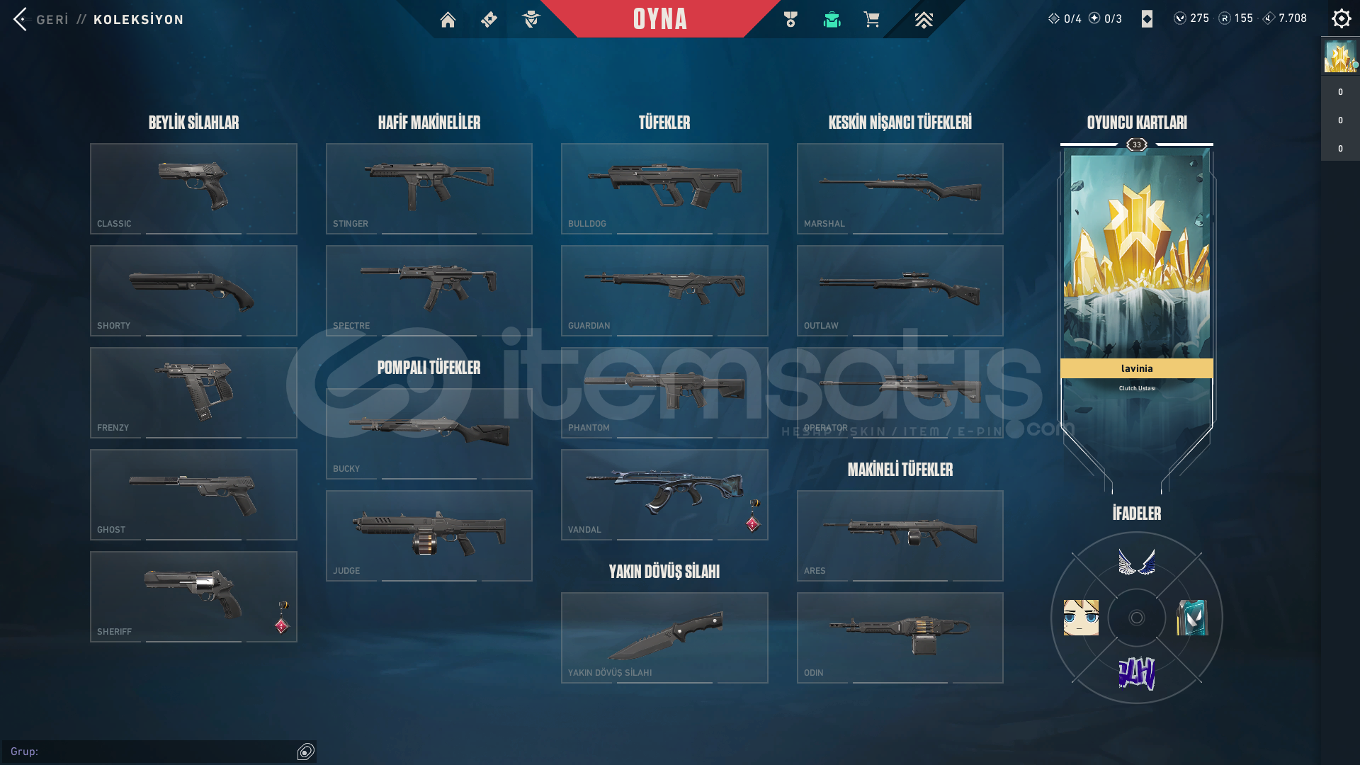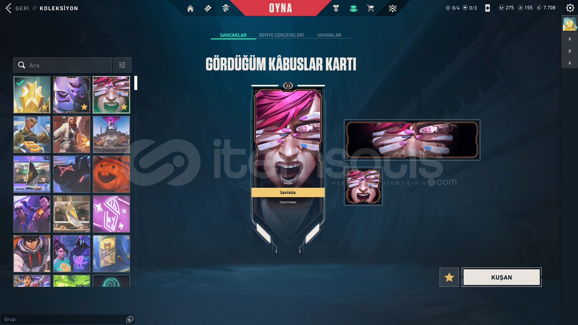 Elmas 2 -0rr V25//ACT6 - EP 9 İmmortal, V25 Yücelik UğurluklarıAJANLAR: CLOVE - CYPHER - DEADLOCK - REYNA - SKYE - TEJO - WAYLAYYüksek MMR'lı hesaptır. 33 seviye hesaptır.Ayrıca Twitch Droplarından Alınmış kartlar ve ünvanlar mevcuttur.Hiçbir hesapta 3. Parti yazılım kullanılmaz, ban riski kesinlikle bulunmaz.!!!Tedarikçiden mail onaysız alınıp kendi mailimize aktarılan hes...