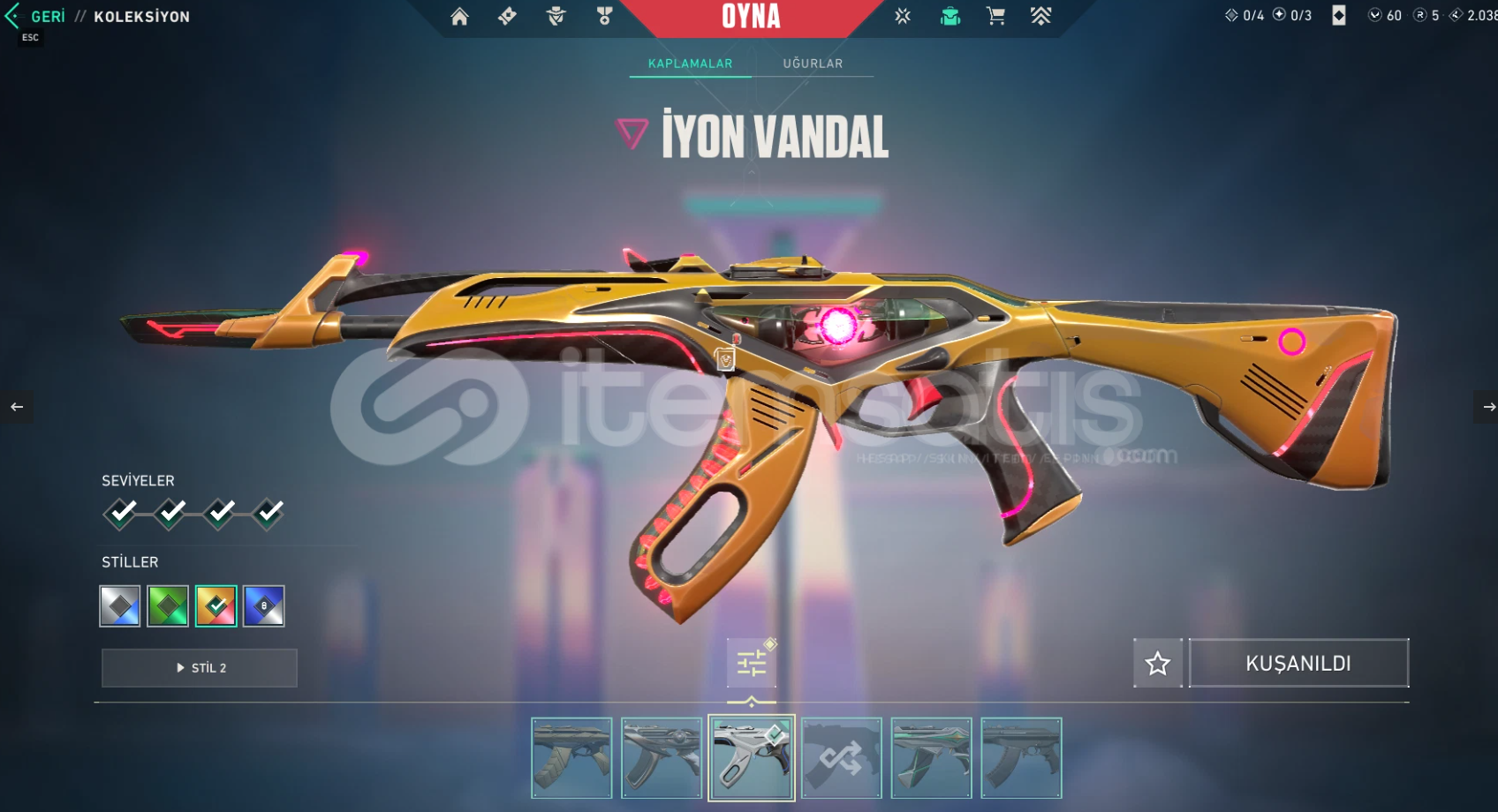 7/24 OTOMATİK TESLİMATTIR!. RANK: UNRANKEDLEVEL: 92ENVANTER DEĞERİ: 34.275 VPSATIN ALINMIŞ İÇERİKLER:Araxys VandalSpectrum PhantomRuination GhostRGX 11z Pro PhantomChronoVoid VandalShellspire SwordMagepunk SparkswitchChronoVoid PhantomGlitchpop BulldogVCT x SEN ClassicForsaken Ritual BladeReaver SheriffVALORANT GO! Vol. 1 SpectreReaver OperatorReaver GhostIon VandalPrime//2.0 PhantomTOPLAM: 30 SKİN---Tüm Bilgileri Değişmektedir.Sat...
