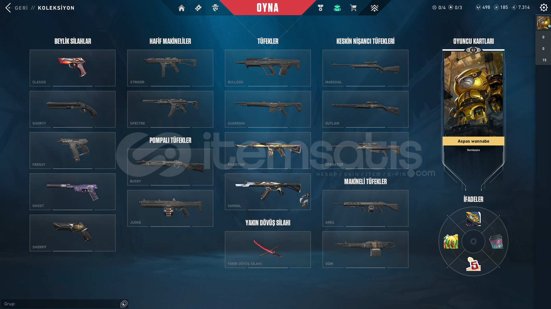 Valorant skinli E-Postalı hesaptırIŞIK MUHAFIZI VANDAL ASİL PHANTOM EXO KATANA BULUNAN HESAPTIR.Rank: DERECESİZSunucu: TRMağaza: EUMailli hesaptır bilgileri size devredilmektedir, mevcut bilgileri kendi bilgileriniz ile değiştirebilirsiniz.Ürünler fotoğraftakiler ile bire bir aynı hesaptır, farklı hesap değildir