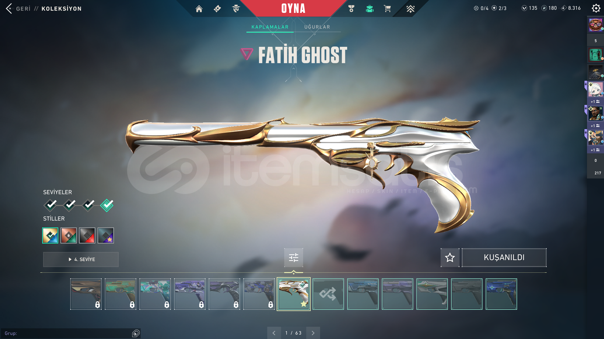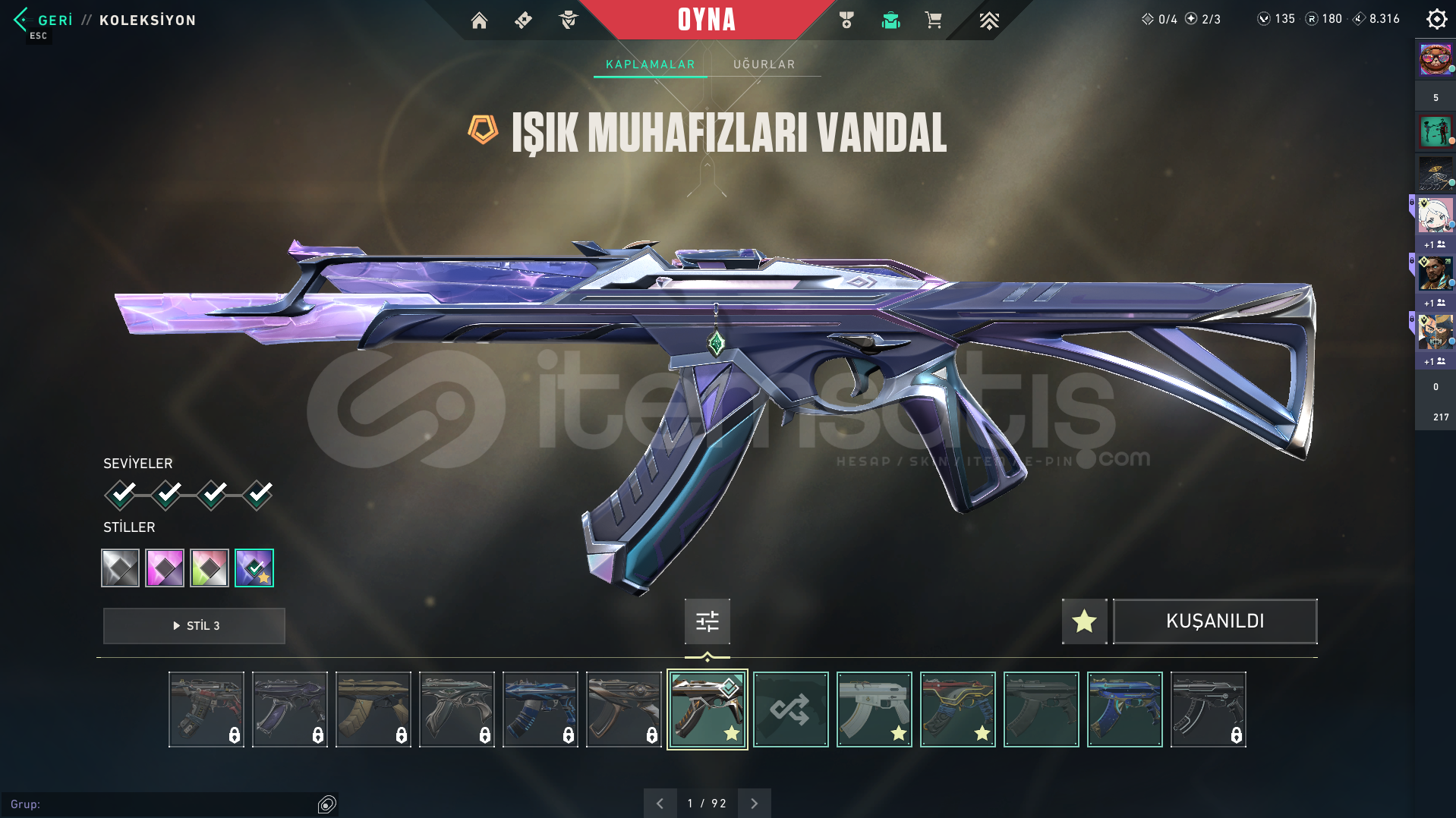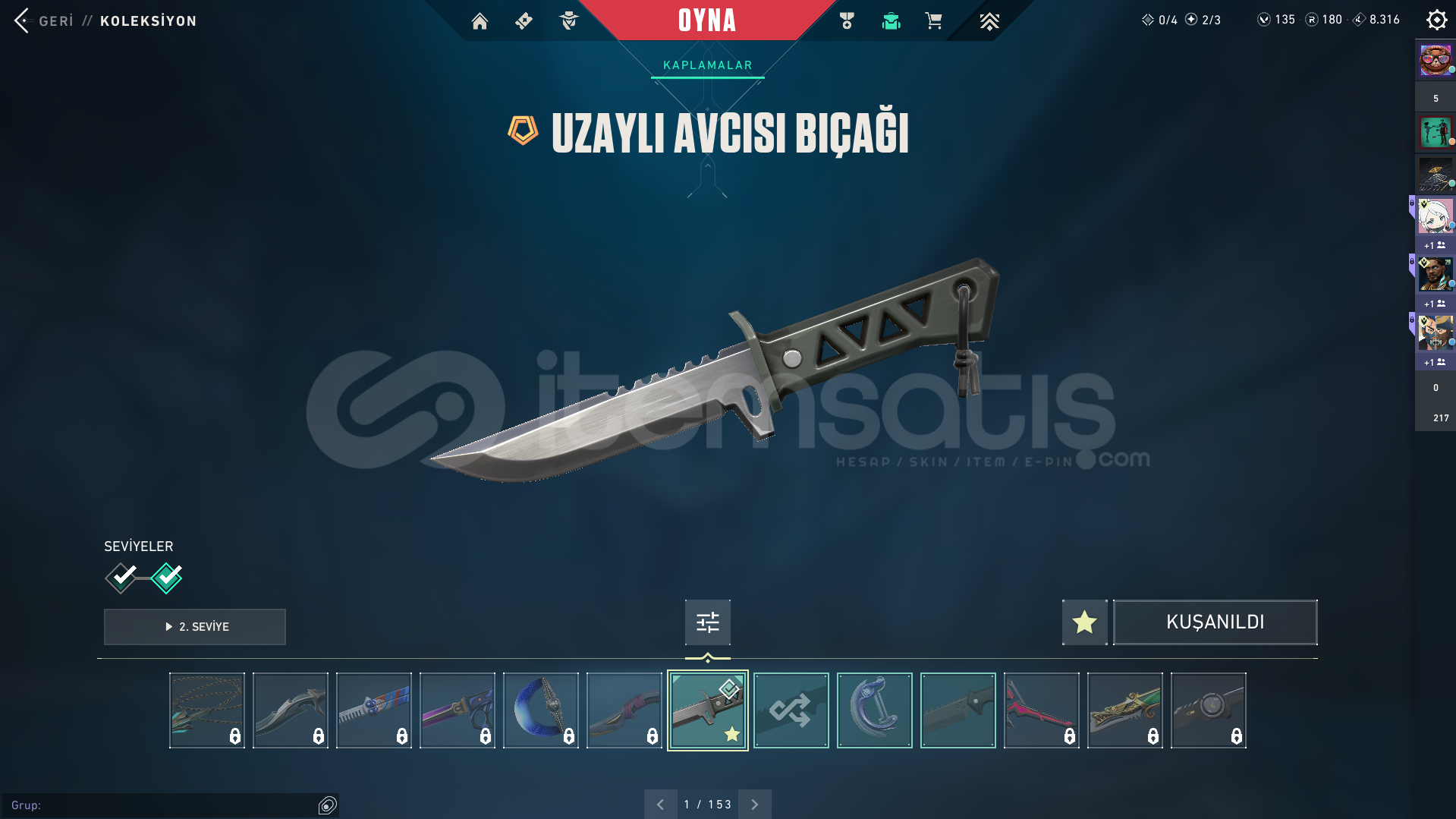 IŞIK MUHAFIZI VANDAL NEPTÜN VANDAL ONİ VANDAL ÖZEL HAREKAT PHANTOM YAĞMACI PHANTOM SİHİRPUNK GUARDİAN FATİH GHOST UZAYLI AVCISI BIÇAK İRİDYUM BIÇAK BULUNAN HESAPTIR.