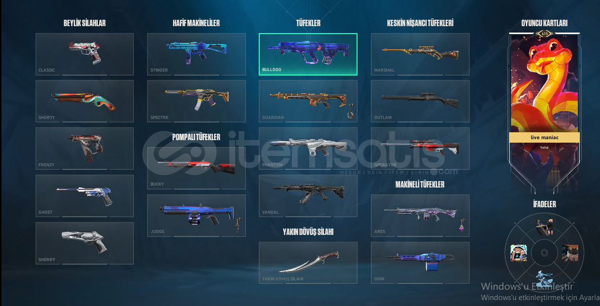 Hesabın ilk maili yoktur ve teslimi yapılamıcaktır hesabı acil paraya ihtiyacım olduğu için satıyorum hesabın hiç bir sıkıntısı yoktur Tr sunucusudur kuşkusuz alabilirsiniz teslimi aktif olduğum sürece anında yapılırHesabın içindekiler:1-Delipop Vandal2-Yağmacı Vandal3-İyon Sheriff4-Asil Spectre5-İyon Enerji Kılıcı Ve bir çok şey...