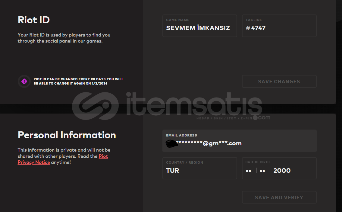 🎯 Hesap tamamen tarafımdan devredilecektir. Geri alınması söz konusu bile olamaz.🔍 Satın alım yapmadan önce, hesabın geçmişinde geri alma amacıyla açılmış herhangi bir destek bileti olup olmadığını kontrol etmeniz önerilir. Bunu Riot Destek sayfasına giriş yaparak 'Biletlerim' kısmından kontrol edebilirsiniz. Bu, hesaplarımın ne kadar güv...