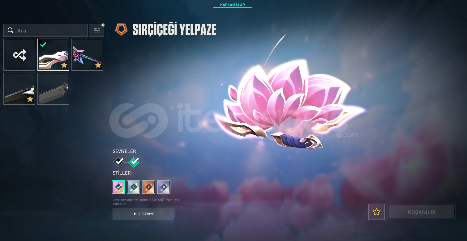 Hesapta bir çok skin vardır skinler