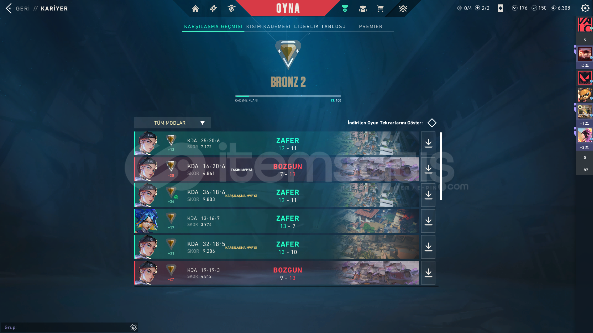 Ürün Hakkında Bilgi;İLANI SATIN ALDIĞINIZDA 7/24 OTOMATİK OLARAK TESLİM EDİLİR.RANK - BRONZ 2HESAP SEVİYESİ - 59SKİN SAYISI - 3VP SAYISI - 176+ 100.000 BAŞARILI İŞLEM İLE GÜVENLE ALIŞVERİŞ YAPABİLİRSİNİZ